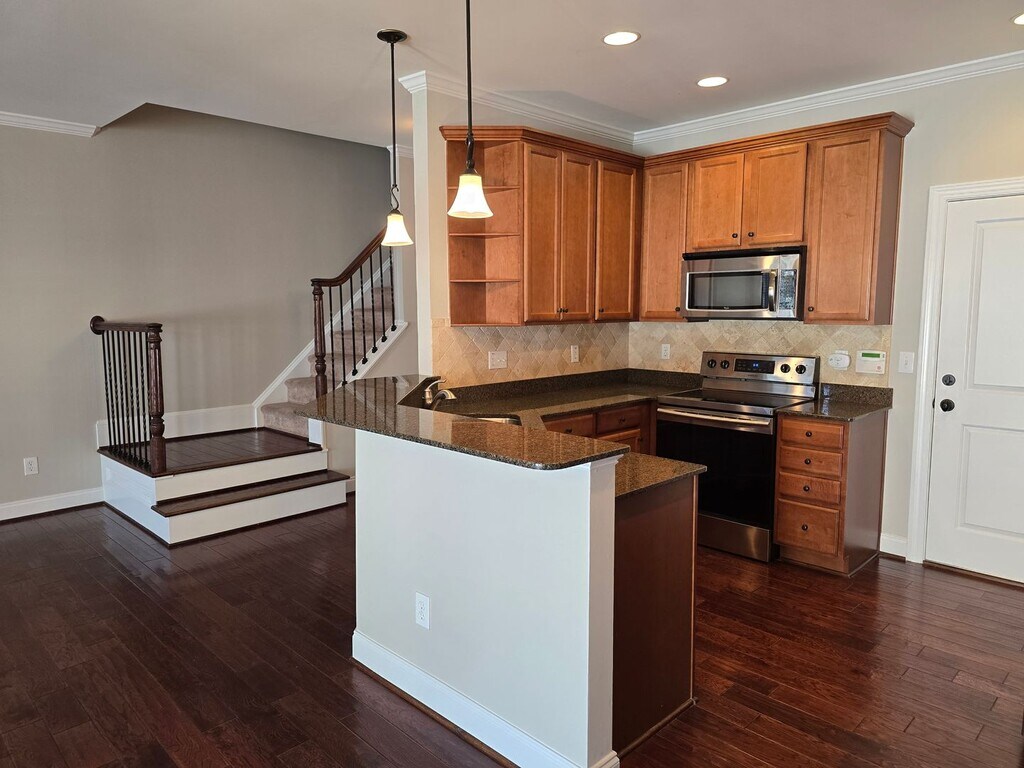Beautiful 3 story luxury townhome within minutes of RTP, RDU, I-40, I-540 and shopping! Tastefully finished with wide plank hardwoods throughout 1st floor, Kitchen with granite counters, stainless steel appliances. Open and spacious living and dining area. Ceramic tile in all baths. M.Br suite with glamor bath and granite counters. Additional full bath on 2nd floor. Finished 3rd floor with full private bath can be bonus room or 4th bedroom. Fenced in patio for added privacy, 1 car garage & washer/dryer included! $300 pet fee per pet if approved. $150 admin fee. Landlord believes home contains approx 2100 sqft but tenant shall verify & not rely upon foregoing representation. Rented as is unless otherwise agreed. Agent will advertise/show/process applications-after tenant placement, owner will self manage the home and hold the deposit. Photos taken prior to tenant move-in.