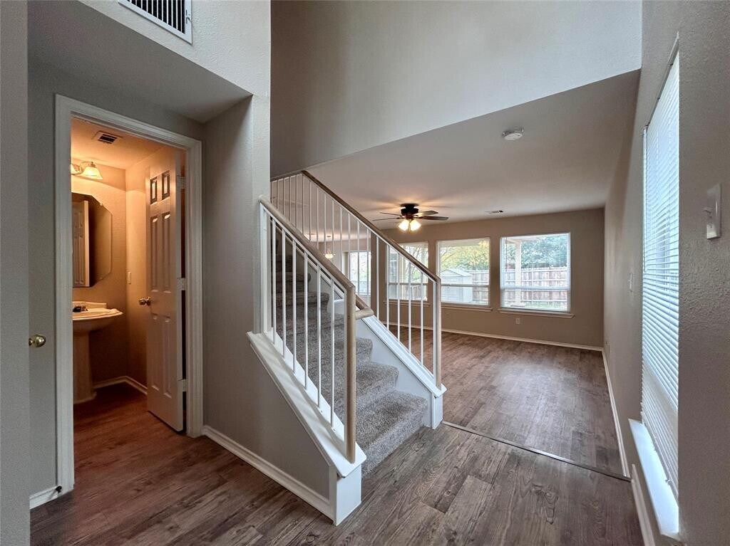 As you enter home there is a closet & half bath that leads to an open concept to living, dining & kitchen! Living Room has multiple windows that face backyard to covered patio w/wrap around deck. Dining room has bay windows w/inset blinds in door that leads to covered patio. Kitchen has plenty of cabinet/counter space. Separate room for W/D connections/pantry/extra storage under stairs that connects to garage. All bedrooms are upstairs w/small family room & extra storage closet. Spacious master bedroom w/ceiling fan, large walk in closet, bath has dual sinks & separate tub & shower. Bedrooms are good sized w/nice closet space & ceiling fan. Backyard has shed and tree to provide additional shade. All properties in our portfolio are required to participate in a mandatory Resident Benefits Package (RBP), designed to provide savings and convenient professional services that make maintaining your home hassle-free. The cost of this program is available for $43/month. Liability Insurance is also required for an additional $11.95 (this can be removed by providing your own insurance evidence if the required standards are met).