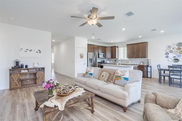 Welcome to this beautiful move-in ready 3-bedroom, 2-bath home in the heart of Anna, TX, just 2 years old and brimming with modern style. The open floor plan is enhanced by a soothing neutral color palette, creating a bright and inviting atmosphere throughout. Durable LVP flooring flows seamlessly through the main living areas, complemented by cozy carpet in the bedrooms. The spacious kitchen is the heart of the home, featuring a large center island, ample cabinetry, and plenty of counter space for cooking, dining, and entertaining. The generous backyard offers room to relax, play, and host outdoor gatherings. Located in Anna ISD and offering quick access to Hwy 121, this home combines comfort, convenience, and contemporary living! Available for immediate Lease!