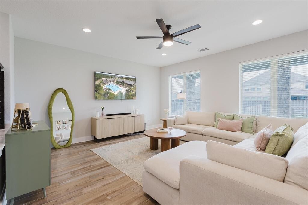 Better Than New in Parmer Ranch – Don’t Wait to Build! This turnkey 5-bedroom, 4-bathroom two-story home is ready for you now and truly has it all. From the moment you step into the entry foyer, you’re welcomed by a bright, open layout that flows seamlessly into the heart of the home, a stunning kitchen with white cabinetry extended to the ceiling, built-in oven and microwave, gas cooktop, and a large eat-up center island. The kitchen opens to a spacious living room filled with natural light from abundant windows. The main level offers a private primary suite tucked at the back of the home, featuring a spa-like ensuite with dual vanities, a soaking tub, walk-in shower, and a large walk-in closet. A second bedroom and full bath on the main level provide the perfect setup for guests or multigenerational living. Upstairs, a large second living area offers flexibility for a playroom or media space, along with three additional bedrooms and two full baths—one of which is en-suite. The backyard is ready for your personal touch and includes a large covered patio ideal for relaxing or entertaining. All of this within walking distance to the incredible Parmer Ranch amenities: pool, parks, pickleball and sports courts, green spaces, and scenic walking trails. The home is also on the market for sale. MLS ID 8901573
