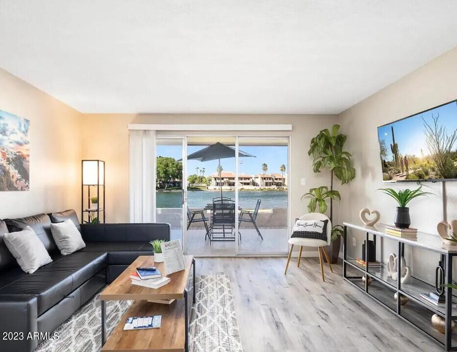 Lake front — Well-designed 2-bedroom, 2-bath home featuring a split floor plan that provides privacy between bedrooms. Enjoy lake views from the living area and Primary Bedroom. Access to community amenities including a pool and spa and tennis! Recent updates include new carpet and refrigerator. A must see!