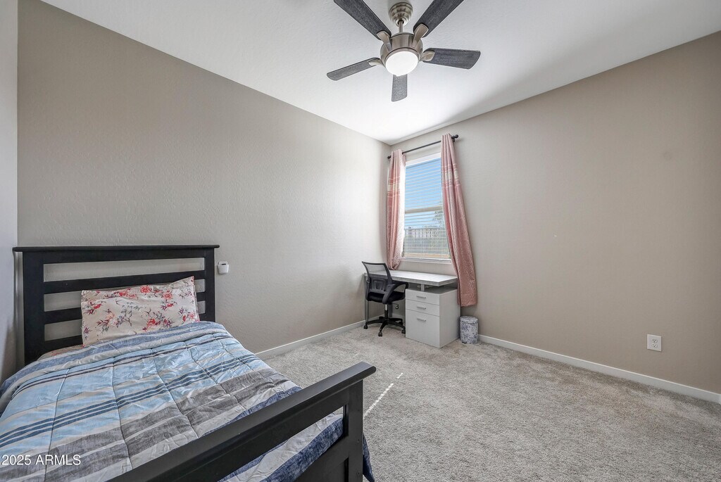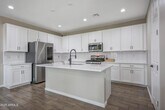 LEASE OR LEASE-TO-OWN!!! Built in 2024,this stunning 4 bed,3 full bath home has a fully landscaped backyard and is located on a premium lot next to a greenbelt and park. This home was designed with style,comfort,and functionality in mind featuring a split floor plan,an en suite bedroom with its own bathroom and walk-in closet,and two additional spare bedrooms. Modern upgrades throughout,including 8-foot doors,sleek hardware,42-inch white shaker cabinetry,quartz countertops,wood-look tile in all of the common areas and carpet in the bedrooms. The kitchen has a tile backsplash,high end appliances,gas range,offers tons of counter space and cabinets,and has an island with sink that overlooks the living area. The primary suite is large enough to accommodate furniture of any size. The primary bath features a dual sink vanity and a beautiful tiled shower with shower niche and a separate soaking tub. Enjoy Arizona living in your expansive backyard,complete with low-maintenance turf and paversideal for gatherings,play,or simply relaxing outdoors. The home also has a water softener,fans in every room,and a service door in the garage with access to the side yard for convenience. Come take a look and you'll fall in love with this home and the community!