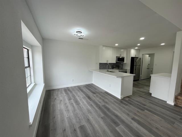 Beautifully renovated three-bedroom, two-bath home located in Plano. The open-concept layout features a spacious living area with a cozy fireplace. The modern kitchen offers sleek cabinetry, quartz countertops, and stainless steel appliances. Both bathrooms include contemporary vanities and upgraded flooring. With no carpet throughout, this home combines style and easy maintenance. Enjoy the fenced backyard—perfect for entertaining