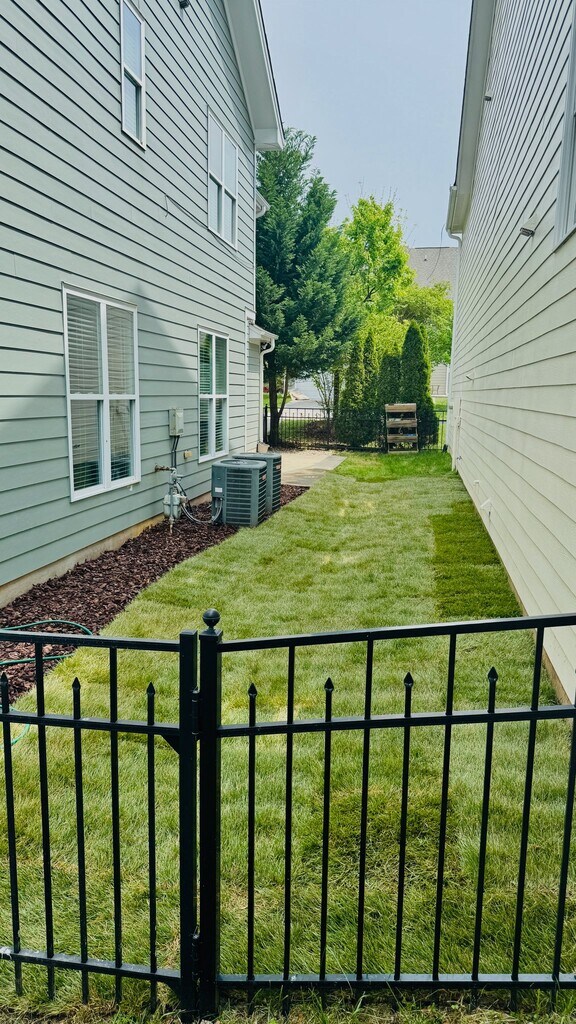 Property Id: 1244810 The fenced yard. The privacy. The storage. This detached single-family home checks every box — a fully fenced side yard with a private patio, 2-car garage with built-in shelving, and hardwood floors throughout the main level, stairs, and hallway. No carpet where it matters most. The open-concept main level is made for real living. Two ceiling fans and oversized windows keep the large living room bright and comfortable, and a cozy fireplace brings warmth on cooler evenings. The kitchen flows into a dining nook and separate laundry room — washer and dryer included — with a half bath that rounds out the downstairs. Step to your private patio and fully fenced side yard — perfect for cookouts, unwinding, or letting the dog run. Upstairs, hardwood floors continue through the hallway — no carpet anywhere it wears out. The owner’s suite is genuinely impressive: soaring vaulted ceilings, a ceiling fan, a generous sitting area that doubles as a second office, dual vanities, soaking tub, and separate shower. Two large secondary bedrooms each have ceiling fans and serious closet space — one features a huge walk-in closet. A deep hall linen closet keeps everything organized. The bay-windowed front room on the main level floods with natural light — ideal as a home office or guest suite. Kitts Creek (): competition pool, 7,000 sq ft clubhouse, fitness center, lighted tennis courts, dog park, community garden, playground, and walking trails. Davis Drive corridor — Wegmans 2 miles (5 min), Costco 2-3 miles (6 min), Biogen 3 miles (7 min), RDU Airport 5 miles (8-10 min). Cisco and IBM both 8-12 miles, 12-15 min via I-40. Distances approximate, vary by route and traffic. Available 5/15/26 · $2,600/mo · $2,600 deposit 700+ credit and/or 3× income · $45/person app & background check (18+) · $175 lease fee · Non-smoking · Pets negotiable ($250 fee + pet rent) Schools: Verify assignments at