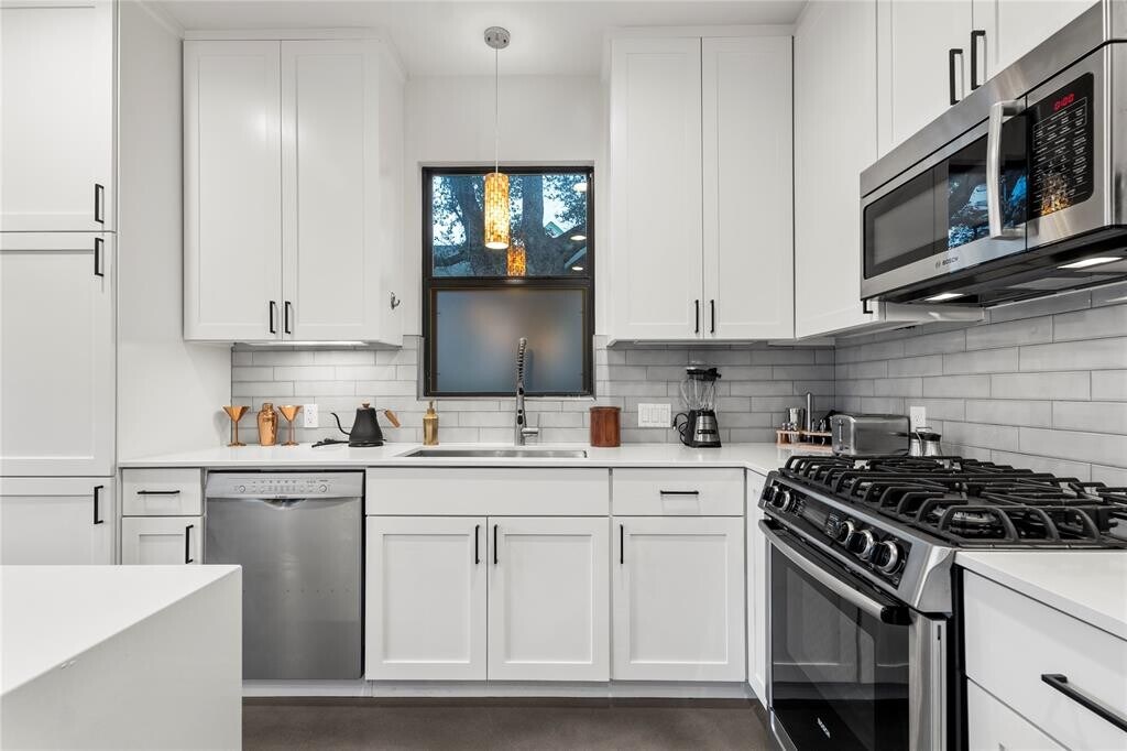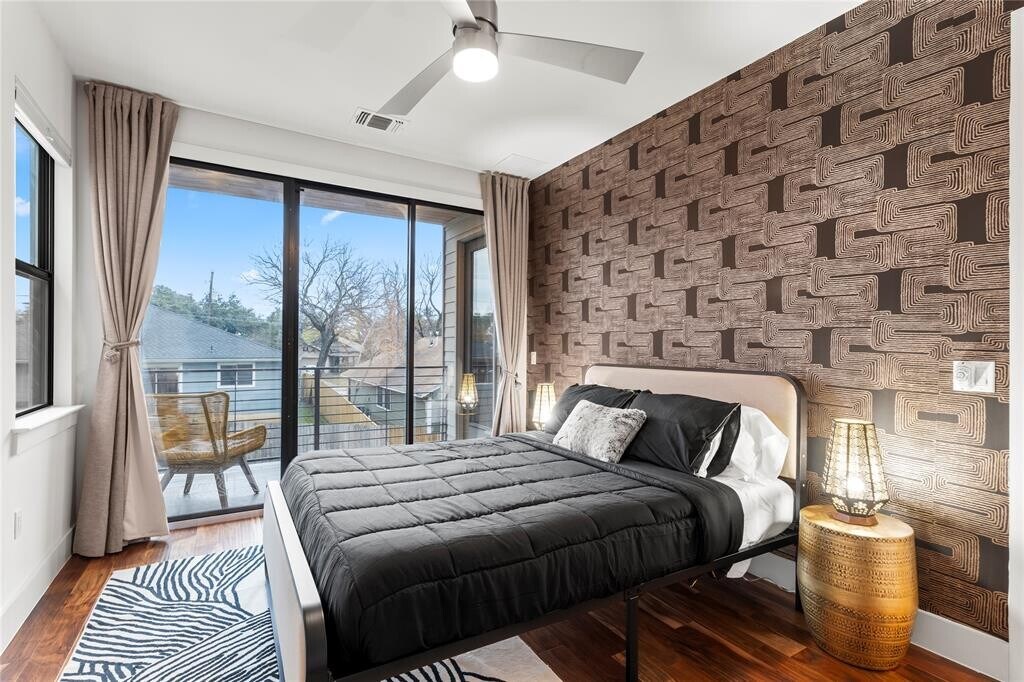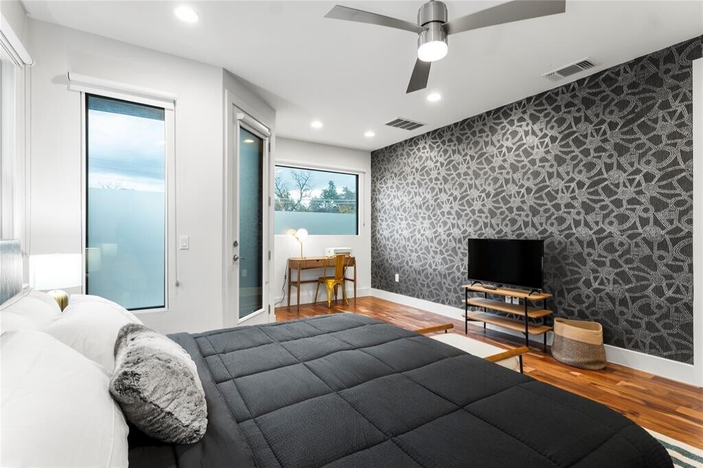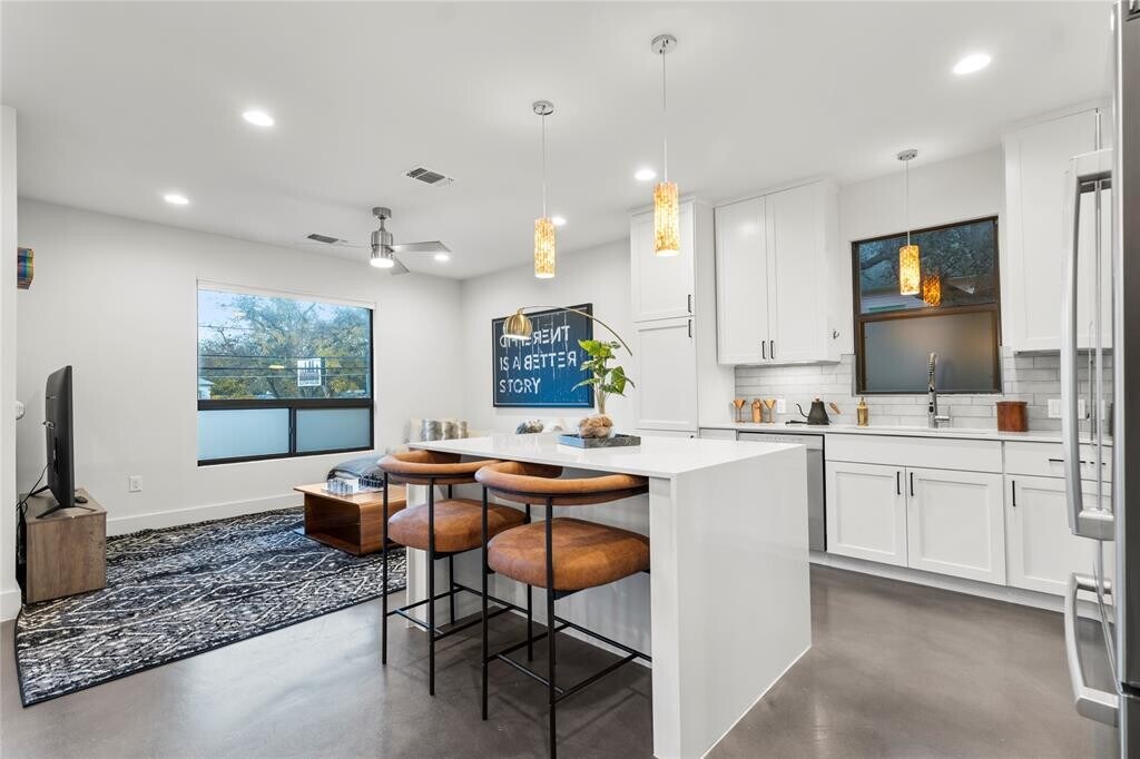This 3- story condo, stand-alone home offers vibrant living near downtown and is walking distance to UT Hospital/Medical School, fantastic E. Austin restaurants and overall vibrant downtown 78702 living. The first floor features open living, dining and kitchen with polished concrete floors (100% hard surface flooring throughout home). Second floor offers 3 bedrooms including a primary with an en suite bath and walk in closet. The third floor flex space and terrace (with full outdoor kitchen) provides the perfect place for an office, entertaining, 2nd living/media room or home gym. Check out the downtown capitol and UT tower views! This home features smart home technology and camera(s) as well as a full array of stainless steel appliances with washer and dryer on the 2nd floor with bedrooms. Upgraded high efficiency air conditioning system with 3 separate nest thermometers is certain to keep you comfortable as well. Generous storage on every level, a private metal fenced xeriscaped yard, 4 total outdoor balconies and a private, spacious two car garage with electric car charger and plenty of guest parking rounds out the well positioned end-unit home.