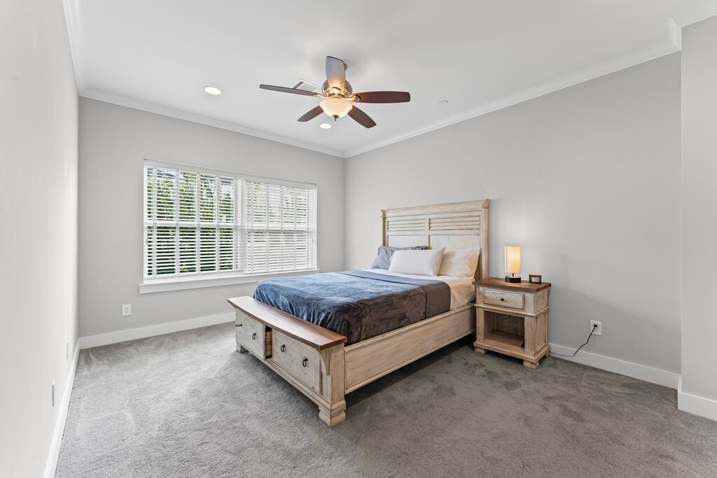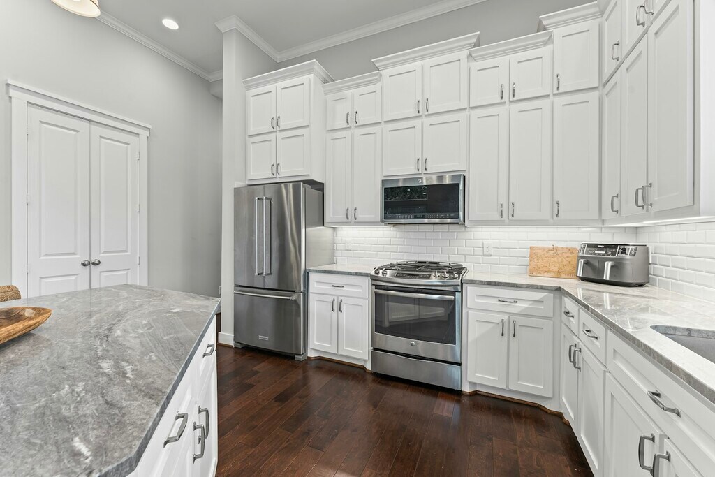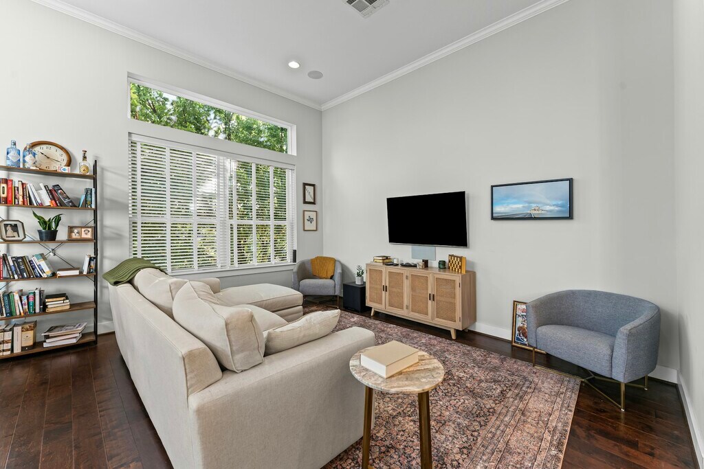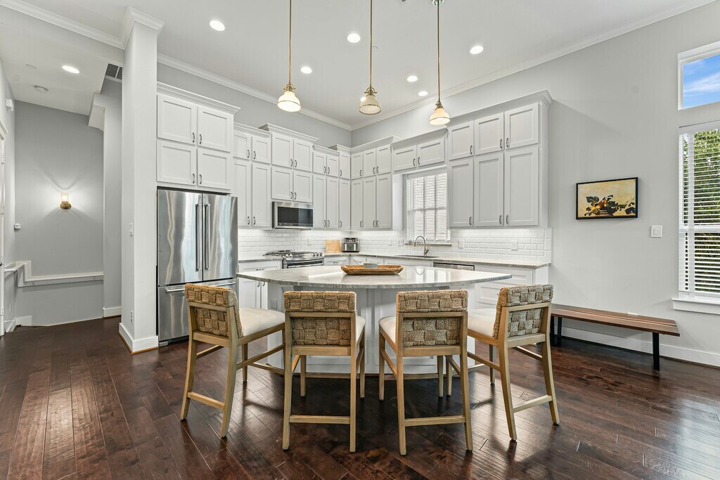 Welcome to 1105 Fowler St. This three bedroom, 2,478 sq. ft. home in Rice Military offers proximity to downtown, River Oaks, Memorial Park, the Heights and more. The three bedrooms all have their own full bathrooms ensuite: the primary's is fitted out with a double vanity and jacuzzi tub. Two half baths on the lower floors afford added convenience. Flexible on lease length, just ask. The open-concept living area is ideal for both relaxation and entertaining, featuring high ceilings and abundant natural light that enhances the sense of space and luxury. TV with sound system included. Crown molded, high, white cabinetry in the kitchen creates a soaring feeling. Step outside to enjoy the fenced and gated yard space with stone pavers and a gas grill built-in to a granite countertop. The home is situated in a lively and truly walkable neighborhood, with easy access to neighborhood sports bars, popular restaurants and activities like pickle ball - all literally right around the corner.