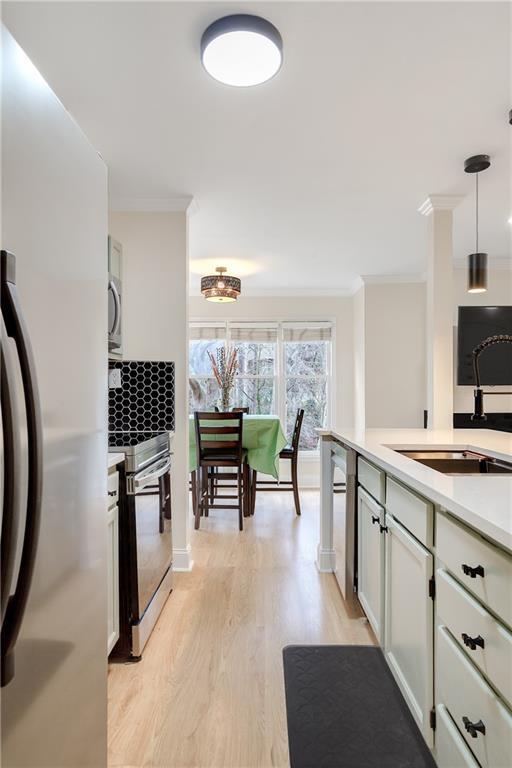 Welcome home to this light-filled,EAST-facing 2-bedroom,2-bath condo in a PRIME Sandy Springs location! Enjoy peaceful pond views from your private covered patio and dining area while soaking in natural sunlight throughout this spacious home. The inviting living room features a cozy gas fireplace,perfect for relaxing evenings. The oversized primary suite offers a walk-in closet,new double vanity,and plenty of storage. The kitchen is newly remolded with new appliances,stone counters,ceramic hexagon backsplash tiles and dropped lighting. Throughout the home added LED recessed lighting with HALO feature,new ceiling fans,newly painted throughout,hardware on ALL doors,and light plank flooring. Located on the 2nd floor (Walk in level) in the highly desirable Gardens at Dunwoody Springs,this quiet community offers exceptional amenities including swimming,tennis,clubhouse,fitness center,billiards room,and a scenic community lake. Just minutes from Perimeter Mall,top dining,shopping,MARTA,I-285,GA-400,and major office hubs—close to everything while still feeling tucked away. HOA covers water,trash,and landscaping. A rare combination of comfort,convenience,and lifestyle! This condo is conveniently located close to the corner of Hammond Dr. and Peachtree Dunwoody Rd and is walkable to 3 MARTA stations,Northpoint Hospital,Perimeter Mall,Starbucks,Publix and a lot more! Home offered FULLY FURNISHED and Utilities Included! Owner is a licensed Real Estate Agent #433256. Listing agent is co-owner #328215 MLS ID 7701770