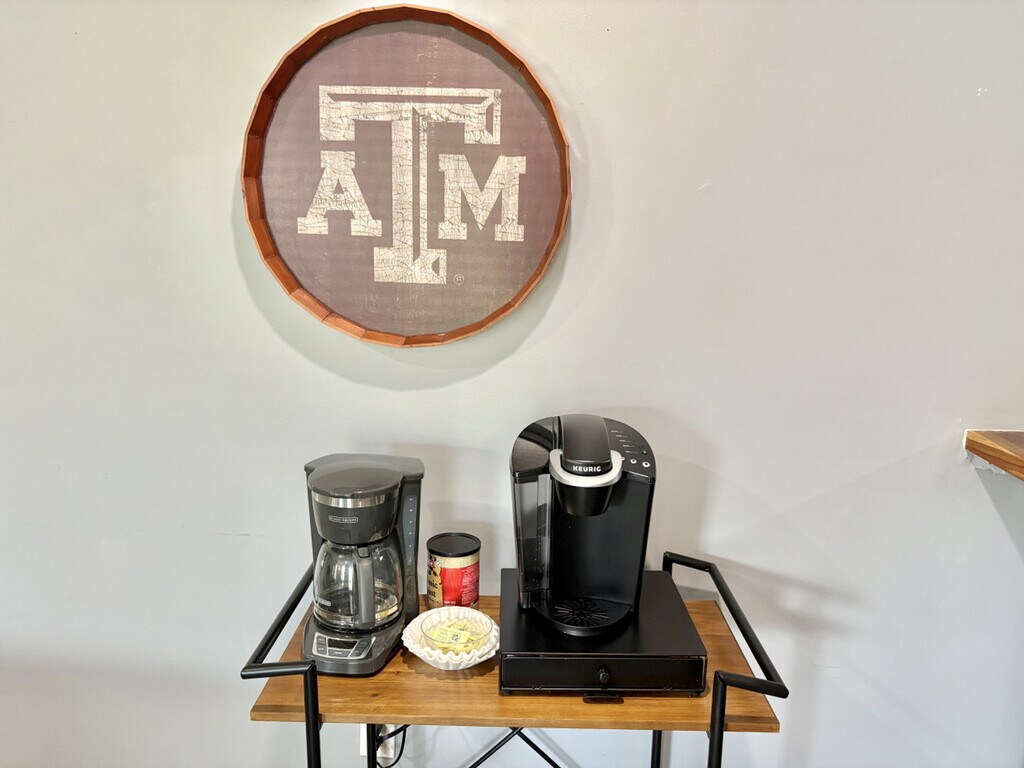 Welcome to Gig’em on Glade, a spacious retreat in College Station, just minutes from Texas A&M University and Kyle Field. Feel at home in this property that is perfect for game-day weekends, graduations, family gatherings, or a relaxing getaway in Aggieland. Inside, you’ll find a large, open living and dining area perfect for relaxing or entertaining. The kitchen features a gas stove, coffee bar, and all cookware, utensils, dishes, and glassware you could need. Upstairs, a private room with a TV and games provides space for streaming or kid-friendly fun. The backyard is the heart of this home, featuring a covered pavilion, seating, an outdoor swing, fans, lighting, and a gas BBQ, perfect for celebrations, game-day cookouts, or quiet evenings outside. An EV charger is available for guests who need it. Pets are welcome. Location is unbeatable. You’re just blocks from campus, with HEB less than a mile away and literally every type of food nearby: coffee bars, casual cafés, Tex-Mex, BBQ, pizza, burgers, and international cuisine. Nearby highlights include Texas A&M University (1 mile), Kyle Field, Blue Bell Park, Reed Arena (1.5 miles), Northgate Entertainment District (3 miles), Legends Event Center (5 miles), and Downtown Bryan (6 miles). Guests must be 25+ to book. If the cleaning crew detects any evidence of smoking, a fee of $400 will be retained to deodorize the home. If unauthorized guests have stayed, a fee of $300 will be retained plus $25 per person. [SI]