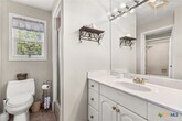Unbelievable rental on the Guadalupe River! Large,comfortable home on an acre with quiet river views. The home features a warm downstairs ideal for hosting around the fireplace or on the balcony overlooking the river. Upstairs features a massive primary suite and an additional bunk room. The “bunkhouse” basement provides an extra bathroom,bedroom,and flex area. The house can be rented fully furnished or emptied. Must schedule showings with listing agent.