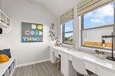 Creatively designed to accommodate the needs of modern families, this is a unique floorplan. The main living area is expansive, encompassing the island kitchen, dining area and family room. Invite the pee wee football team for an after-party or snuggle up in front of the fire — the room easily adapts to your needs. Outstanding storage capacity is another feature, with a walk-in pantry, large utility room, walk-in closet in the primary suite and extra space in the garage.
