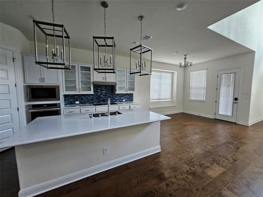 Gorgeous and spacious single-family home featuring 5 bedrooms, 4 bathrooms, and a functional 2-story floor plan.The long foyer opens into a bright and inviting family room that seamlessly flows into the kitchen and dining area. The kitchen is equipped with granite or Silestone countertops, stainless steel appliances, a decorative tile backsplash, and a large center island—perfect for entertaining.The main bedroom suite, located off the family room, includes a luxurious bath and an expansive walk-in closet. Upstairs, you’ll find a spacious game room, along with 3 additional bedrooms and 3 full bathrooms, providing comfort and convenience for family and guests.Enjoy outdoor living with a large covered patio, plus a professionally landscaped and