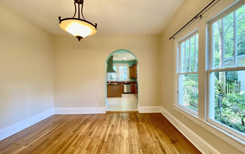 AVAILABLE MID-JUNE 2026! Gorgeous Cape Cod home in the Watts Hillandale Historic District is waiting for you! Meet the neighbors while rocking on your large front porch, or wave from the enclosed sun room. Large, sunny formal living room leads to formal dining room and kitchen. Kitchen features granite countertops, high end stainless appliances, and an eat-in nook for less formal dining. Walk out the French doors to the shaded back yard patio. There's a large 1st floor primary suite with walk-in closet. Upstairs there's another primary suite with built-in storage and walk in closet. There's another spacious bedroom, home office, guest bath, and laundry room upstairs. Walk out onto the 2nd floor sleeping porch with stairs leading down to the back yard. In the back there is a 2-car carport and shed for extra storage. You can walk to Locopops, Cocoa Cinnamon, 9th St. and Broad St. business districts, and it's a quick commute to Duke campus and hospital. 4 city parks in the neighborhood. Home is unfurnished. Pets negotiable. No Smoking. Tenant pays utilities and lawn care. Stately Cape Cod in Watts Hillandale