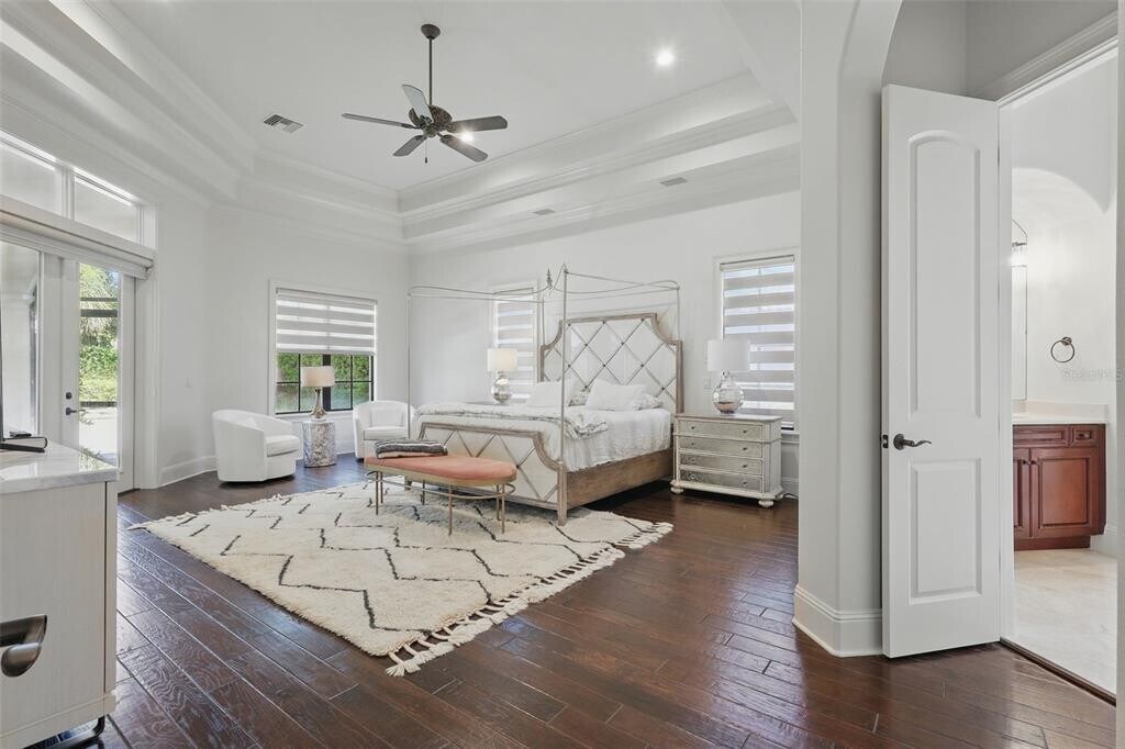This exquisite custom residence in the Reserve at Lake Butler Sound community offers unparalleled luxury and sophistication. Striking wrought-iron arched double entry doors open to a seamless,airy floor plan featuring elegant travertine flooring and captivating views of the pool and lanai area.Elegant wrought-iron chandeliers grace the welcoming foyer and generous dining space. This home is filled with premium upgrades,including elite appliances,dual gas fireplaces,and soaring ceilings throughout.The expansive chef’s kitchen seamlessly connects to the casual breakfast nook and family room,highlighted by a bespoke built-in entertainment center and towering 10-foot corner sliding glass doors that fully retract to reveal a spacious screened porch equipped with its own fireplace and fully appointed outdoor kitchen.The kitchen boasts a massive central island,premium Dacor and Sub-Zero appliances—including a six-burner gas cooktop,double ovens,and a wet bar featuring a wine refrigerator and warming drawer—plus an oversized walk-in pantry.On the main level,you'll find a versatile game room with a full bar,a dedicated office,three additional bedrooms,and an impressive primary suite. The primary retreat showcases hand-scraped hardwood floors,a generous en-suite bath with dual vanities,access to a private courtyard,and an expansive walk-in closet.Upstairs,discover an additional bedroom with a full bath,along with a dedicated theater room featuring seating for six,a large screen,and projector setup.Ample parking and storage are provided by the three-car garage,complete with attic access. The fully fenced backyard centers around a grand pool with spa and impressive water features.This exceptional property includes partial designer furnishings as depicted in the listing photos. Enjoy convenient proximity to premier shopping,restaurants,major highways,world-famous attractions,and excellent educational options—such as top-rated public schools and private institutions like Windermere Preparatory School. MLS# O6392514