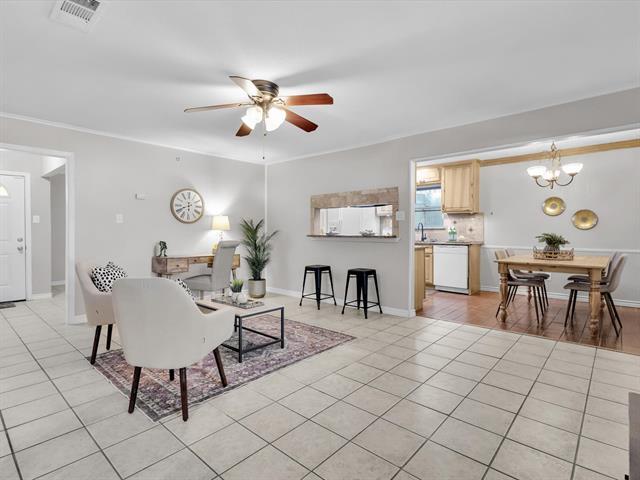 This 4-bedroom, 2.5-bath home offers a central location in the sought-after Linda Heights neighborhood. Enjoy two inviting living areas, including one with a wall of built-ins, perfect for display or storage. The spacious primary suite features an en suite bath with a walk-in shower, elegant soaking tub, and a large walk-in closet. The kitchen is equipped with granite counters, a breakfast bar, gas cooktop, and refrigerator. A powder bath and utility room with washer and dryer are conveniently located downstairs as well. Upstairs, you’ll find three oversized bedrooms with generous closet space and a shared full bath. With no carpet throughout, maintenance is a breeze! Designed for entertaining, this home also offers a large fenced backyard - including a manual gate across the driveway - making this one ideal for relaxing or entertaining. Solar panels added to save money on electricity costs. Seller is open to paying off the loan with the right offer. Just down the street from Charles A. Gill Elementary and minutes from downtown, with easy access to I-30 and I-635. Floor plan last two photos. Fridge, washer, dryer provided. Rental insurance required. No smoking.