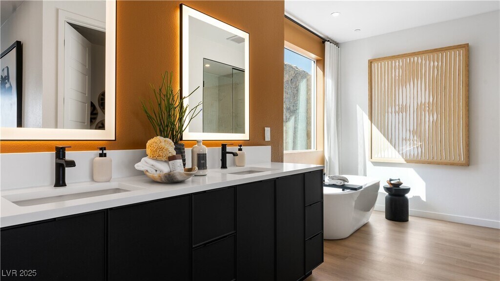 Pricing includes all fees and utilities. SENECA is a new luxury leasing development in the heart of Southern Highlands. This Residence 2’s 3 bed, 3 bath, 3-story residence features upscale finishes. The open-concept living area flows into a gourmet kitchen with premium appliances, an island and modern countertops. Enjoy 3 balconies with scenic views and TWO primary bedrooms with spa-like bathrooms. In a private 50-home community, you’ll enjoy resident services, Tesla panels with set electric fees and EV plug, Gigablast internet, and a management team that handles your home so you can live effortlessly. Seneca fosters wellness with a community garden, pool, spa, barrel cedar sauna and a dog park, with stunning Strip and mountain views. At Seneca, every detail is curated for comfort, near shops, dining, and I-15.
