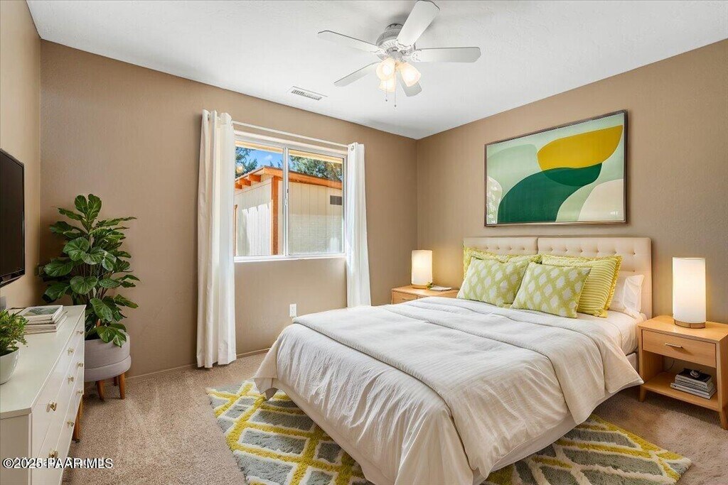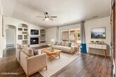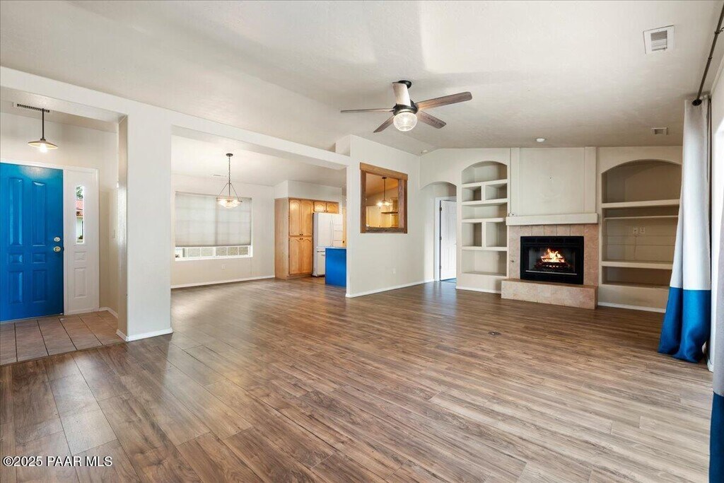 Beautiful home in Prescott Country Club,Private Backyard,3 bedroom,2 bath split floor plan with 2 car garage. Paver driveway and walkway. Gas Fireplace,spacious kitchen with granite counters. Gas stove,Dishwasher Refrigerator,washer and dryer all included. Landscaped front and backyard with 2 sheds for storage.