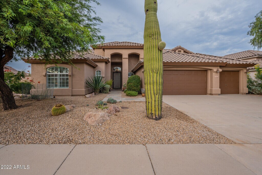 **FURNISHED VACATION RENTAL,30-DAY MINIMUM** Get ready to relax in this beautiful ranch-style home is located in the coveted Echo Ridge neighborhood in Troon North. This spacious home offers 3 bedrooms + den,3 baths & a 3-car garage with an open great room layout,dramatic vaulted ceilings & fireplace. The eat-in kitchen features granite countertops,stainless steel appliances including an induction cooktop,center island w/ seating. The large,private backyard is adjacent to the desert wash and features mountain views,a covered patio,pool,and built-in BBQ.