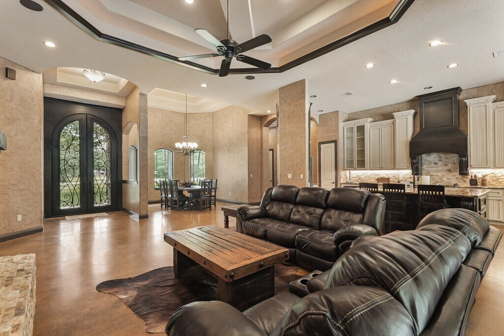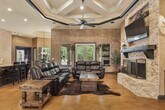 Nestled in a serene setting,this Mediterranean-style stucco home offers 4 spacious bedrooms and a flexible 5th room,perfect as a game room or guest suite,complemented by 4.5 baths. The primary suite features a private seating area,a luxurious bath with a walk-in shower,Jacuzzi tub,and dual vanities. Throughout the home,high ceilings and refined faux paint finishes evoke a sense of timeless elegance. The outdoor oasis includes a heated pool with a grotto,diving rock,and a 10-person Jacuzzi. An outdoor kitchen with Le Griddle,sink,and storage is paired with a wood-burning fireplace on the patio. A 22KW Generac whole-house generator ensures peace of mind. The property also includes a two-car garage and a 26x26 barn-style shop with a covered gable roof for extra storage. No HOA! MLS# 65932751