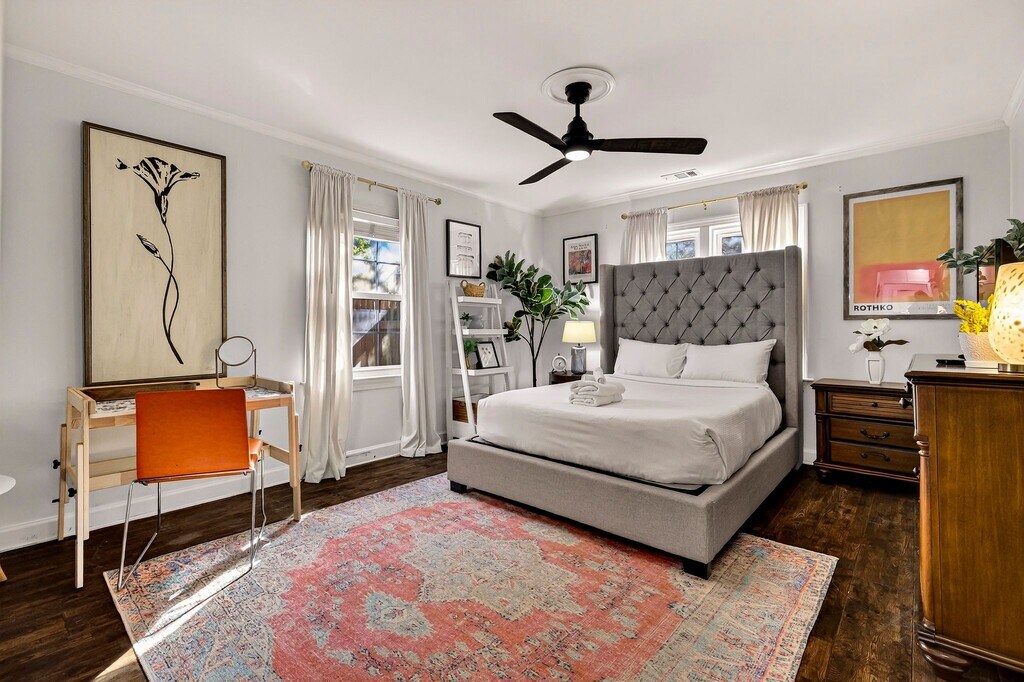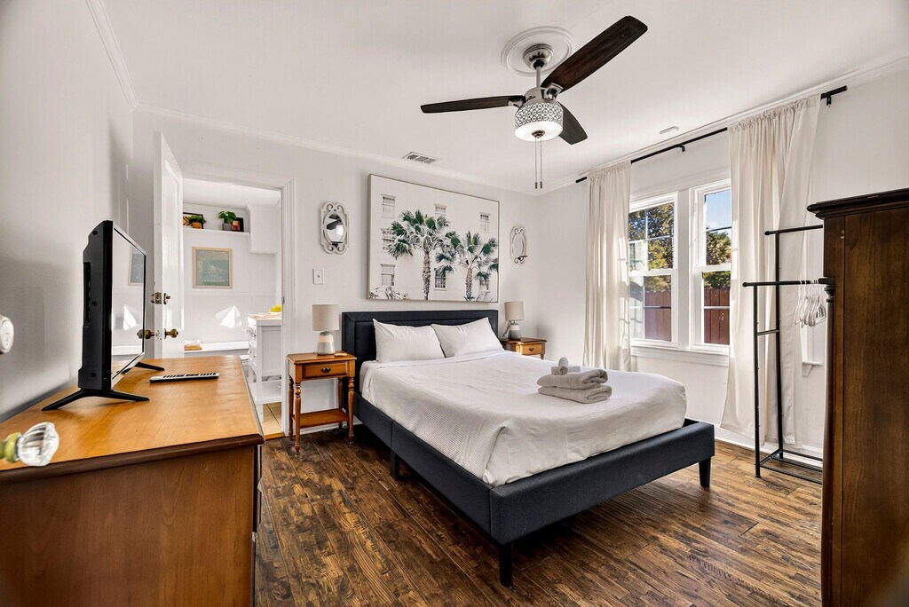 This home is available for guests looking for a 31+ night rental. Specific pricing is available upon request. Monthly rates range from $4000-$5000/month and final rates are based on season and length of stay. Fully furnished- utilities/internet included Welcome to Harmony in Parkside, your spacious and stylish home-away-from-home in Savannah's beloved Ardsley Park. Perfectly positioned just steps from beautiful Daffin Park and only five minutes from everything you might need, this 3BR/2BA retreat blends comfort, convenience, and charm in one of the city's most desirable residential neighborhoods. Thoughtfully designed for extended stays, Harmony in Parkside offers room to truly spread out. Enjoy two generous outdoor living areas ideal for morning coffee or evening unwinding, a bright and inviting living room for movie nights, and a versatile sunroom that doubles as a home office or workout space. Whether you're here for work, travel nursing, relocation, or a long getaway, this home is equipped to support your routine. What We Love About This Home: Unbeatable Location: Daffin Park is just a short stroll away, perfect for runners, dog walkers, or anyone who loves lush green spaces. You might even spot the Savannah Bananas training nearby! Essentials are equally convenient: Whole Foods, Target, coffee shops, and great local restaurants are all within a five-minute drive, making your stay effortless. Warm, Welcoming Interiors: Inside, every room has been prepared with comfort in mind. Relax in the cozy living room, gather for meals in the formal dining room, or cook with ease in the well-stocked kitchen. This is the kind of home that instantly feels familiar- elegantly furnished, thoughtfully equipped, and ready for you to settle in. Split Living: The bedrooms are spread out amongst the home to ensure total privacy for all of those staying. The primary bedroom offers a king bed, in addition to a luxurious ensuite bathroom that has an impressive walk-in shower. Across the house, the two guest bedrooms both offer a queen bed, split between the hall-way guest bathroom that has a tub-shower combination! What is parking like for this home? Guests will have access to one garage space - all other parking is on-street out front of the home, which is also easy and convenient. Sleeping Configuartion: Bedroom 1: King Bed Bedroom 2: Queen Bed Bedroom 3: Queen Bed We can welcome your dog companions at this pet friendly home, but ask that you find other arrangements for cats, birds, and other furry friends. There is a $250 pet fee (non-refundable) with a 35 lb. maximum weight limit per dog and a limit of 2 dogs per reservation. Some homes may allow larger dogs, please inquire for more information.