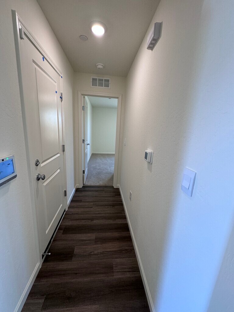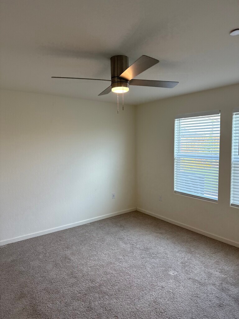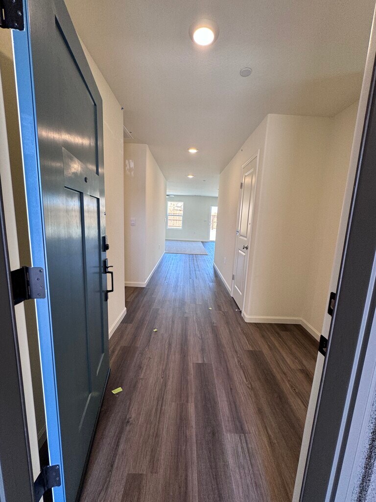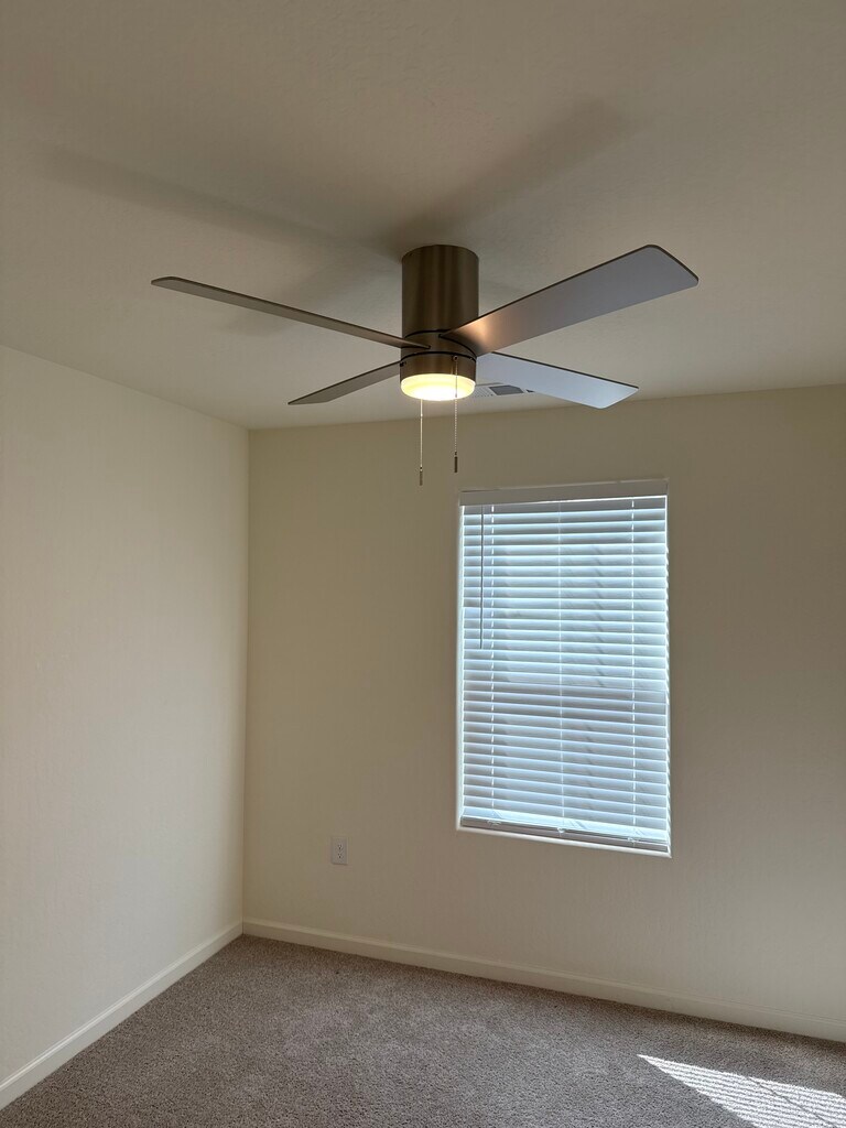 Modern 4-Bedroom Home with Solar Efficiency & Spacious Layout Step into this beautifully designed, single-story home built just one year ago, offering 4 bedrooms, 2 bathrooms, and a generous 3-car garage. With 1,509 sq ft of thoughtfully planned living space, this residence combines comfort, style, and energy efficiency. Interior Highlights: Open-concept living room seamlessly connected to the kitchen and dining area ideal for entertaining. Gourmet kitchen featuring shaker-style cabinetry with satin nickel hardware, sleek quartz countertops, a walk-in pantry, and a central island with snack bar. Equipped with premium Whirlpool stainless steel appliances: range, microwave, and dishwasher. Refrigerator, washer & dryer also included. Spacious primary suite with dual-sink vanity and a large walk-in closet. Energy & Comfort Features: Solar panels paired with a Tesla Powerwall for efficient energy use and storage significant monthly savings on electricity. Ceiling fans installed in all bedrooms for added comfort. Smart Home Panel Outdoor Appeal: Low-maintenance backyard with a paved patio area, artificial turf, and newly planted fruit trees and greenery perfect for relaxing or hosting. rental history from a non-family landlord is required