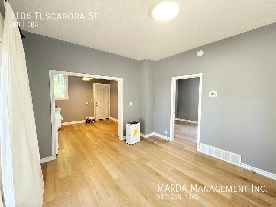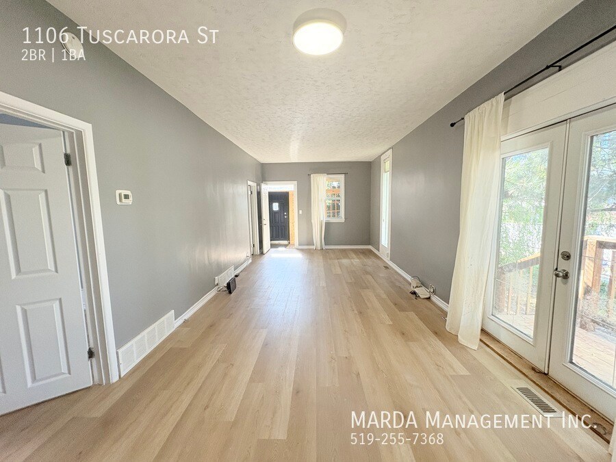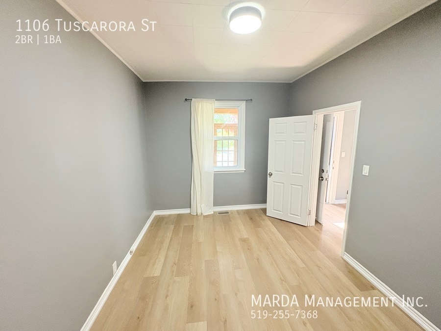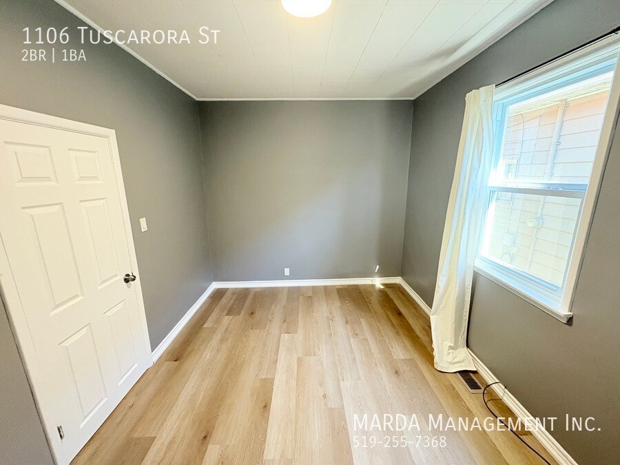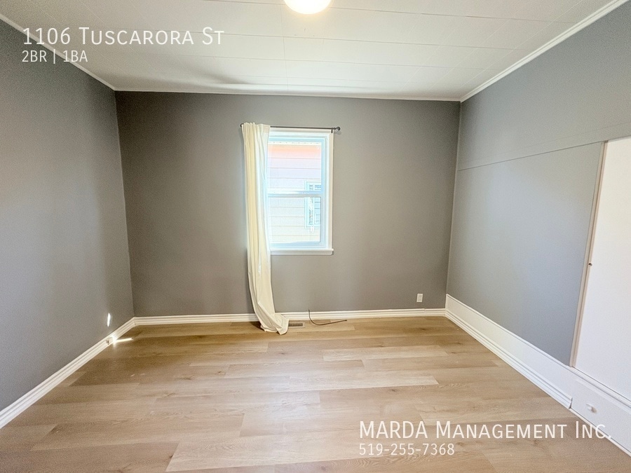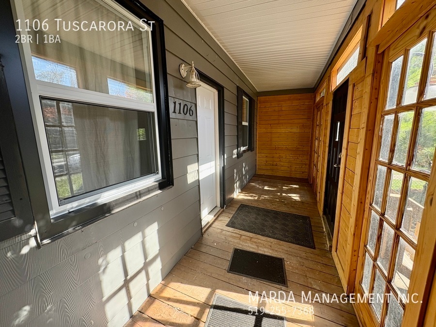 Welcome to 1106 Tuscarora, a charming corner-lot bungalow offering 2 bedrooms and 1 bathroom. This home has been freshly painted and provides both comfort and convenience in a desirable location. The layout includes an enclosed front porch, perfect for enjoying your morning coffee or relaxing in the evening. Inside, youll find two spacious bedrooms with huge built-in closets for plenty of storage. The home also features central air for year-round comfort. Step outside to your fenced-in backyard with a back patio, ideal for entertaining, gardening, or simply enjoying the outdoors. A side entrance with a small deck adds extra convenience. Located in a quiet neighbourhood with easy access to schools, shopping, parks, and amenities, this home is perfect for anyone looking for comfort and functionality. Tenant responsible for hydro, water, gas, snow removal and lawn care. First and last months rent and a credit check are required. Professionally managed by MARDA Management, offering 24/7 maintenance support with live agents and easy rent payment options. Call MARDA MANAGEMENT today at or email to schedule your viewing! Fenced Back Yard Freshly Painted Front Porch Laminate Flooring No Smoking Allowed Pet Friendly