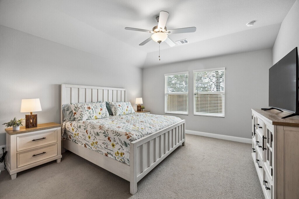 Well-maintained home in Simpson Crossing featuring a functional open-concept layout. The primary suite is privately positioned and includes a walk-in closet and an en-suite bath with dual sinks and a large shower,with an additional en-suite bedroom located nearby—ideal for guests or multi-generational living. The kitchen offers ample cabinet and counter space and opens to the main living and dining areas,creating a central gathering space. Secondary bedrooms are generously sized and adaptable for guests or workspace. A covered back patio extends the living space outdoors and overlooks the backyard,offering room for seating or dining. Conveniently located with access to US 380 and nearby retail,dining,and employment centers in McKinney,Frisco,and Richardson,and zoned to McKinney ISD schools. Community amenities include a pool,walking trails,green spaces,and a playground. Energy-efficient features support year-round comfort and utility efficiency. MLS# 29056055