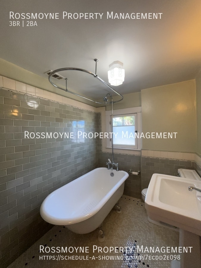 3 Bedroom 2 Bath -2 story lovingly restored Craftsman -Cul de sac -Hardwood floors -Vintage tiles -Loads of kitchen storage -Claw foot tub -Original fireplace surround -Sweeping front porch -One Car Off Street Parking Shared rear yard. Tenant pays gas, 2/3 water and sewer, 1/2 trash. Parking permit required for street parking. No pets (Service animals and ESA exempt). Excellent Credit Required. Renters Insurance Will Be Required. (Not all appliances warranted on lease) This home is for rent exclusively by Rossmoyne Property Management. Beware of any other individual(s) (even someone claiming to be the owner of the home) who might have directed you to schedule a showing — or might have scheduled a showing for you. Do not submit any application for this home with — or pay any fees or deposits to — any party other than Rossmoyne Property Management. If you have any questions or concerns, please contact: Rossmoyne Property Management -Applications and instructions can be downloaded at ; $40 application fee per adult payable in cash, cashier's check, money order or via Paypal to Rossmoyne Property Management; proof of current verifiable income required with completed application forms. Cal DRE 00659141
