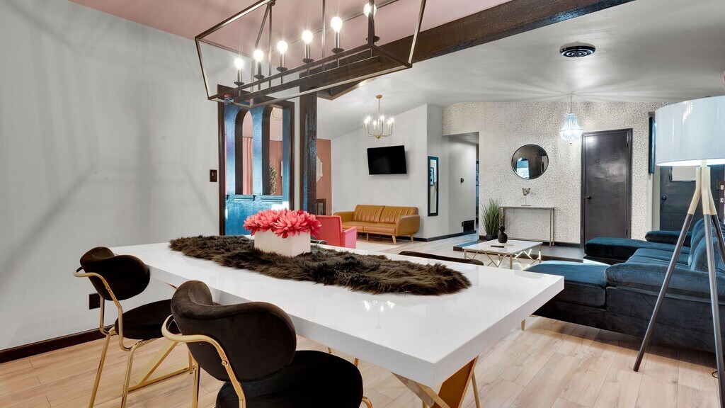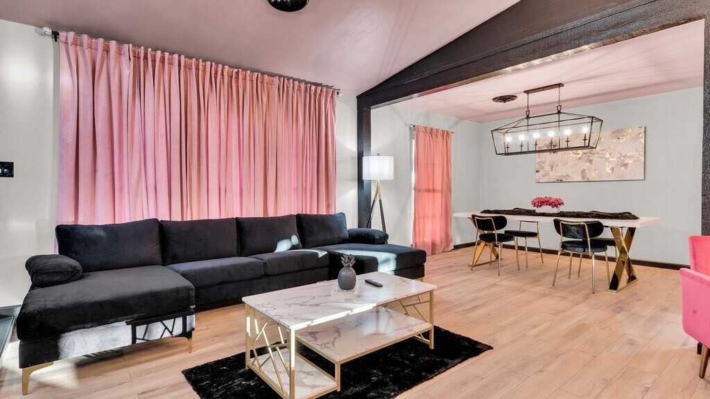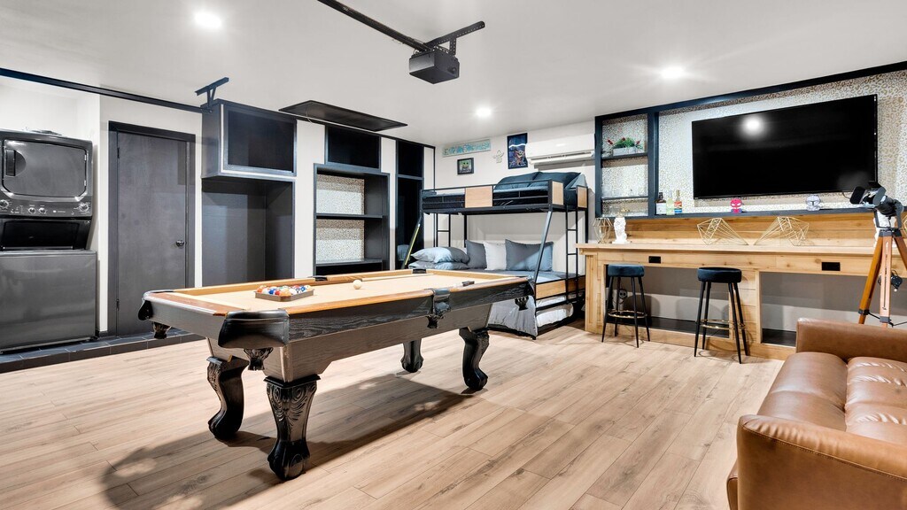 This home is fully furnished with 3 queen beds in all 3 bedrooms, bunk beds in the second living area/game room. Several couches, 6 person kitchen table, 5 smart tvs, fridge, dishwasher, stove, washer/dryer. $3500 for all bills paid and landscaping provided. Executive rental for traveling workers includes wifi If interested in this executive rental please contact for availibity house is also listed on airbnb/vrbo.