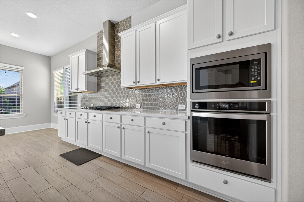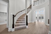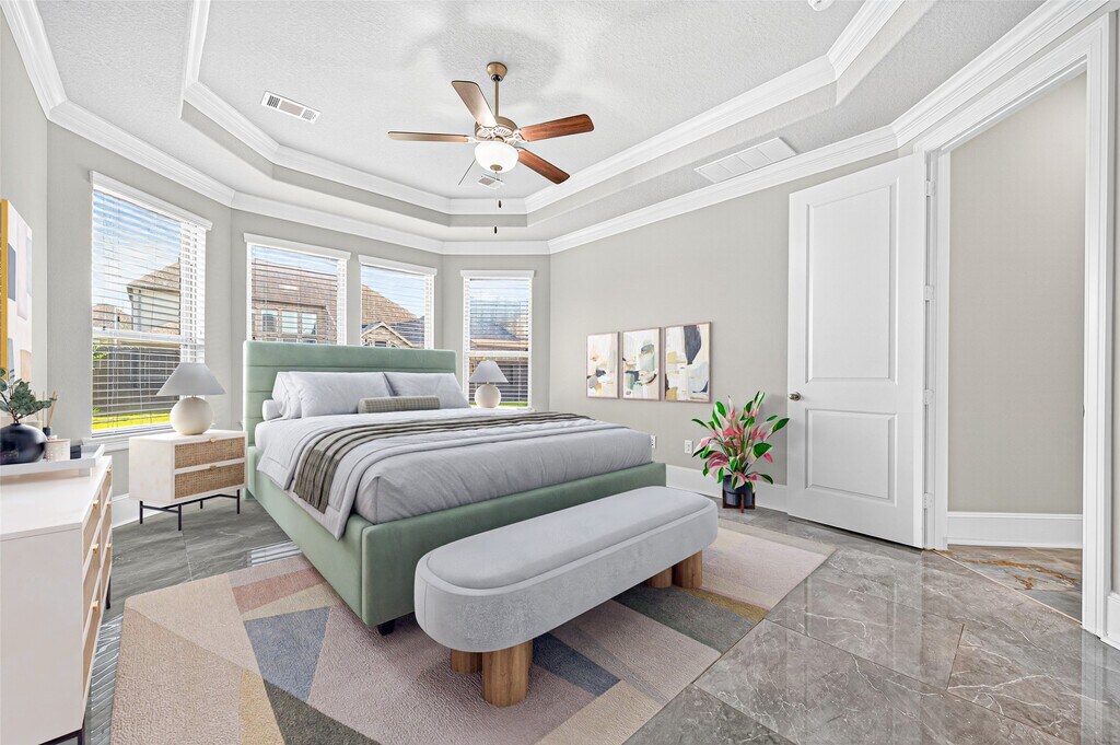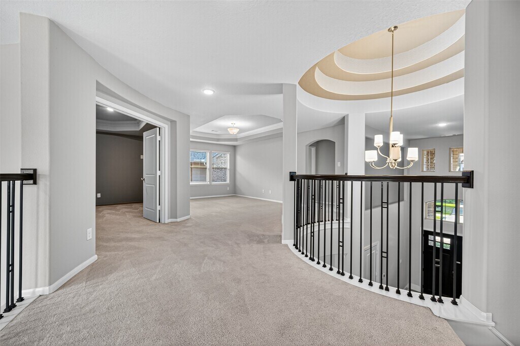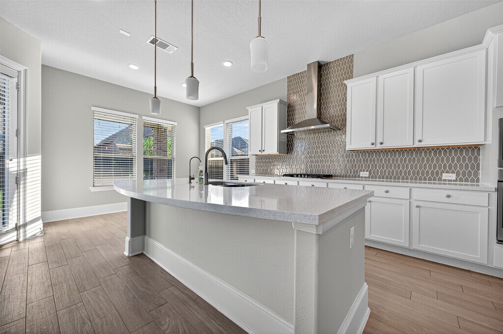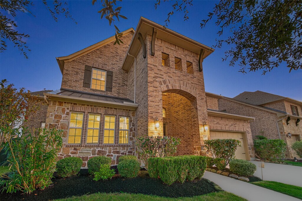 Luxury Living at it's finest! Westin "Hopkins Plan" 4 bedrms/3.5 baths on a huge corner lot in Harvest Green! Tons of upgrades after closing. Walking distance to the elementary school. Elegant brick & stone elevation with 8ft double doors,rotunda entry,curved staircase,fresh paint & 8ft doors throughout the first floor. Home office w/ French doors,formal dining w/ coffered ceiling,and family room w/ wall of windows,gas fireplace,and tile flooring. Chef’s kitchen boasts quartz countertops,island w/seating,SS built-in appliances,wine rack,study and breakfast nook. Luxurious primary suite features curved wall of windows,tray ceiling,relaxing spa bath with center soaking tub,double vanities,glass shower,and upgrade custom walk-in closet connected to laundry. Upstairs offers game room,media room with surround sound,and 3 spacious bedrooms with walk-in closets and 2 upgraded full bathrooms. MLS# 19735115