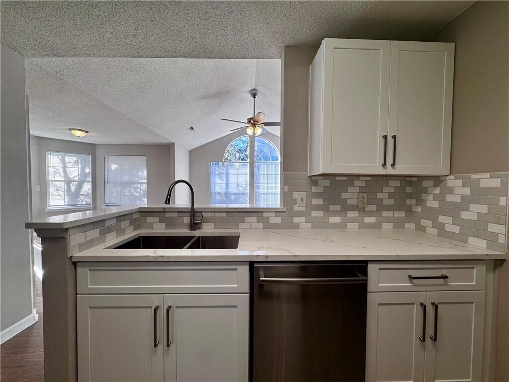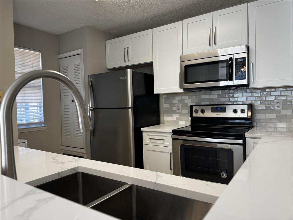 Beautiful 3bdr/2bath in high demand Rivermont Village. BRAND NEW Kitchen Cabinets,Quartz Countertops,Luxury Vinyl Tile Floors,Washer and Dryer,and Deep Stainless Steel Kitchen Sink. Private top floor unit with high vaulted ceilings,spacious & natural light! 3rd bedroom with sunroom can also be used as den,bonus or office. Open-floor plan,Updated Stainless steel appliances,Fresh Paint,fireplace living room with lots of windows,and a private shaded balcony to relax on. Washer and Dryer are included,high-end quiet dishwasher,smart thermostat,deep chef's kitchen sink,and Shlage smart-keypad entry are all included. GREAT LOCATION: top-rated schools,close to North Point,Avalon,Parks,restaurants,shopping,and close access to interstates. Enjoy pool,tennis,clubhouse and 20+ acre private park on the river. Available NOW!