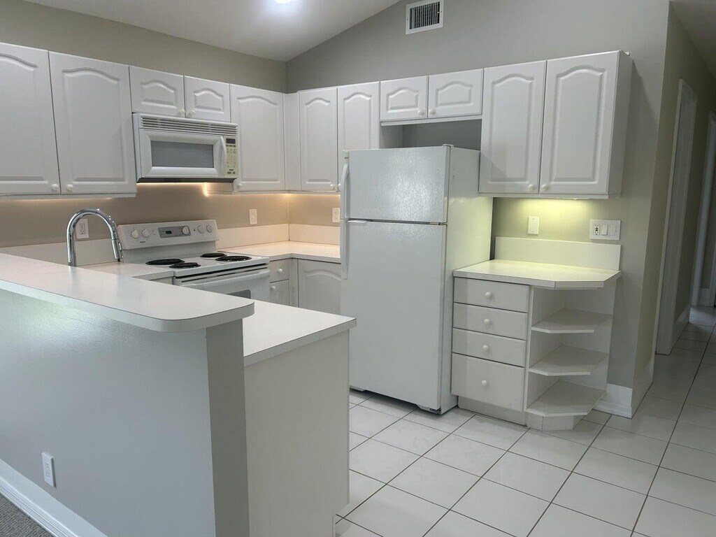 Enjoy this cozy one-story home nestled in a beautiful gated community! Make this 2 bedroom, 2 bathroom, 1 car garage your home. Fenced yard, private, and desirable corner lot in Woodbine Gated Community, with access to multiple pools, gym, and walking paths. High ceilings, New carpet, fresh paint/custom modern accent wall, new HVAC & water heater, full size Kenmore washer and dryer, ceiling fans in all rooms. Basic cable and internet included. Close to the beaches, shopping, restaurants, I-95 and turnpike, hospitals, downtowns, parks, colleges, PBI airport. Landscaping subject to change. REQUIRED: Pre-Approval, Clean background, credit score +700, Pets Restriction, NO SMOKING, NO VOUCHERS, NO SUBRENTALS, NO AIRBNB, No Section Eig, 1 month deposit, first and last in advance, rental insura
