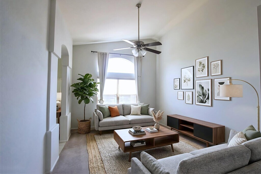 Step into this beautifully 3-beds,2-baths single-level home that perfectly blends comfort and functionality. From the moment you enter,youre welcomed by a bright and inviting layout featuring both a cozy living room and a separate family room,creating the perfect balance of relaxation and entertaining space. A combination of carpet and tile flooring flows throughout,offering a warm yet durable environment suited for everyday living. The spacious kitchen and dining area serve as the heart of the home,complete with modern stainless steel appliances,sleek laminate countertops,a central island,and ample cabinetry for storage. A charming fireplace adds character,while sliding glass doors lead you to a private backyard with a covered patioideal for outdoor dining or unwinding in your own peaceful retreat. The primary suite provides a comfortable escape with a walk-in closet and an en-suite bathroom featuring a walk-in shower,separate soaking tub,and dual vanity. Additional bedrooms are generously sized with great natural light and closet space,while washer and dryer hookups and a two-car garage add everyday convenience. Located in a desirable Chandler neighborhood,youll enjoy close proximity to shopping,dining,parks,schools,and easy freeway access for a seamless lifestyle. We welcome all furry friends of any size! *Please note: this home is unfurnished.* *Photos may include virtual staging to illustrate potential room use.*