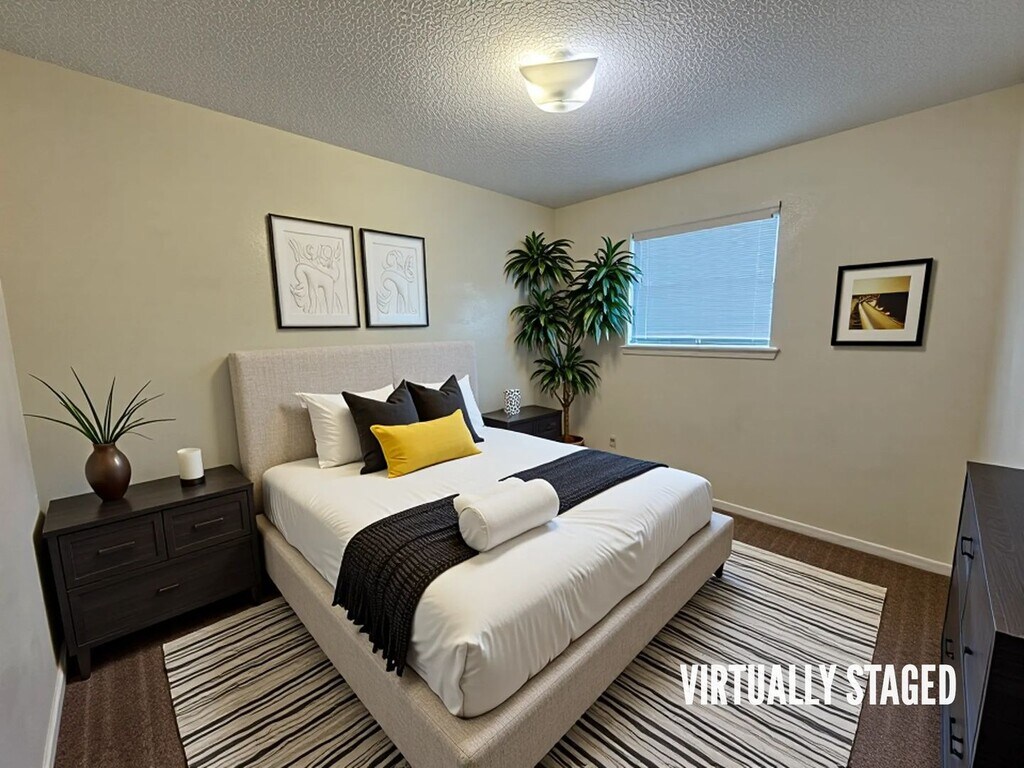 View 360 Virtual Tour: This 2 bedroom, 1 bathroom duplex offers 758 sq. ft. of living space with recent upgrades throughout. The kitchen includes refinished countertops, a stainless steel dishwasher, an upgraded stove, refrigerator, and a double sink. Washer and dryer connections are located in the spacious kitchen for added convenience. The home features wood vinyl and carpet flooring, as well as a covered back patio overlooking open grassy fields. Come by our office to view this property today! Water is included with a $45 monthly fee. Disclaimer: The furnishings or enhancements shown are AI-generated and intended for inspiration only. They may not reflect the actual scale, condition, or current features of the property.