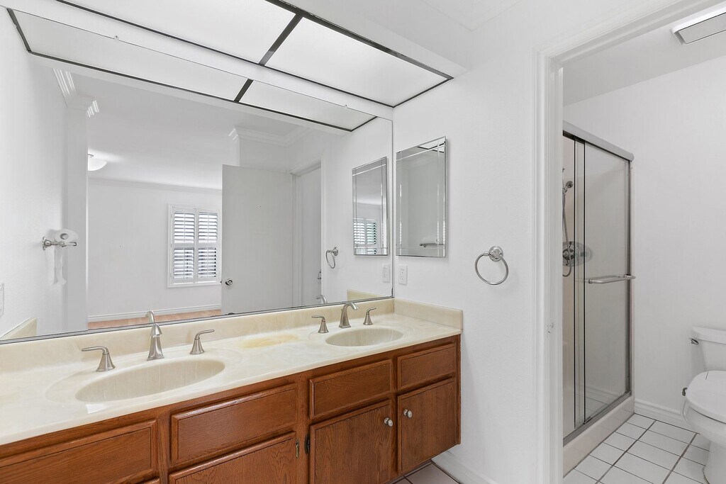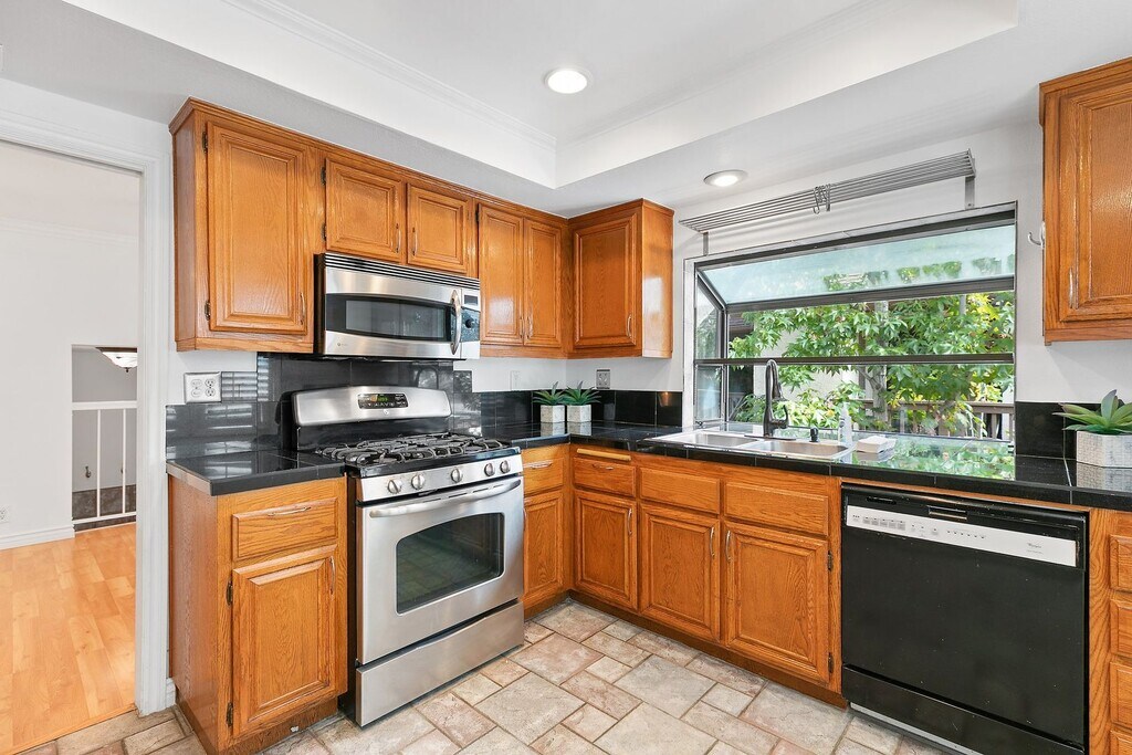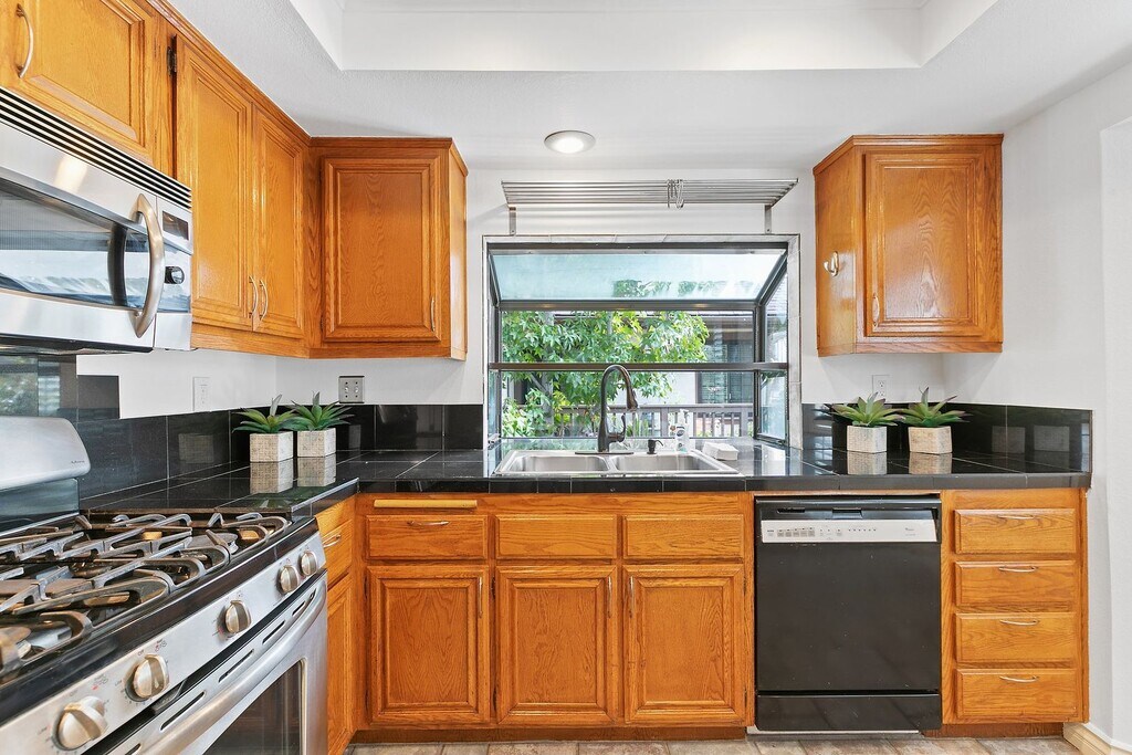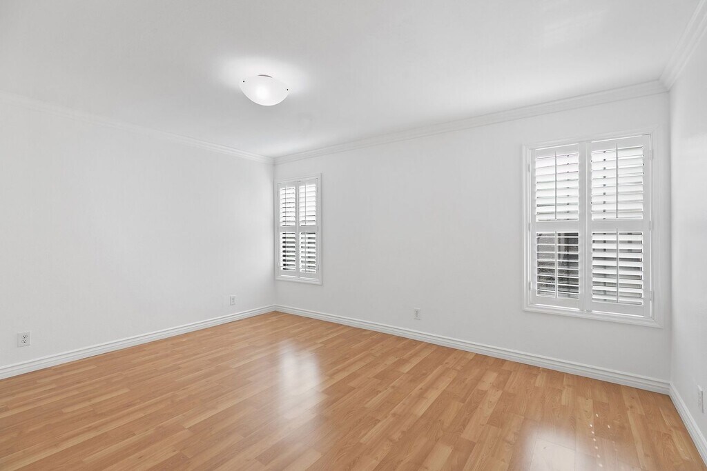 Tucked within a gated community; this corner location, large townhome has it all! Located in the downtown Main St. Across the street from the GG Community Center and Garden Grove High School. Fresh new paint, smooth surface flooring and a open floorplan with all 3 bedrooms located separately throughout home. 2 car attached garage on 1st level. Living room, dining room, balcony and master suite on 1 level. Upstairs includes two (2) master suites and laundry room. Spacious kitchen with bay window off of kitchen sink, dining area, gas stove, microwave, granite counters with tons of cabinets and pantry. Washer, dryer and refrigerator are included with "as is" no warranty. Central air and heating through nest system. Shutters throughout home. Plenty of closet space and walk in closets. Upstairs laundry room with side by side washer and dryer. Balcony off of living room.