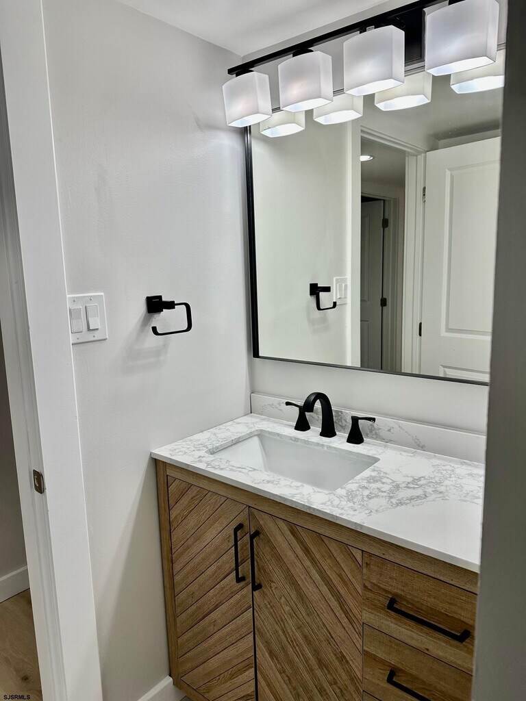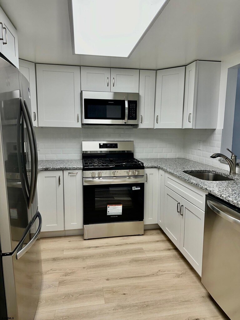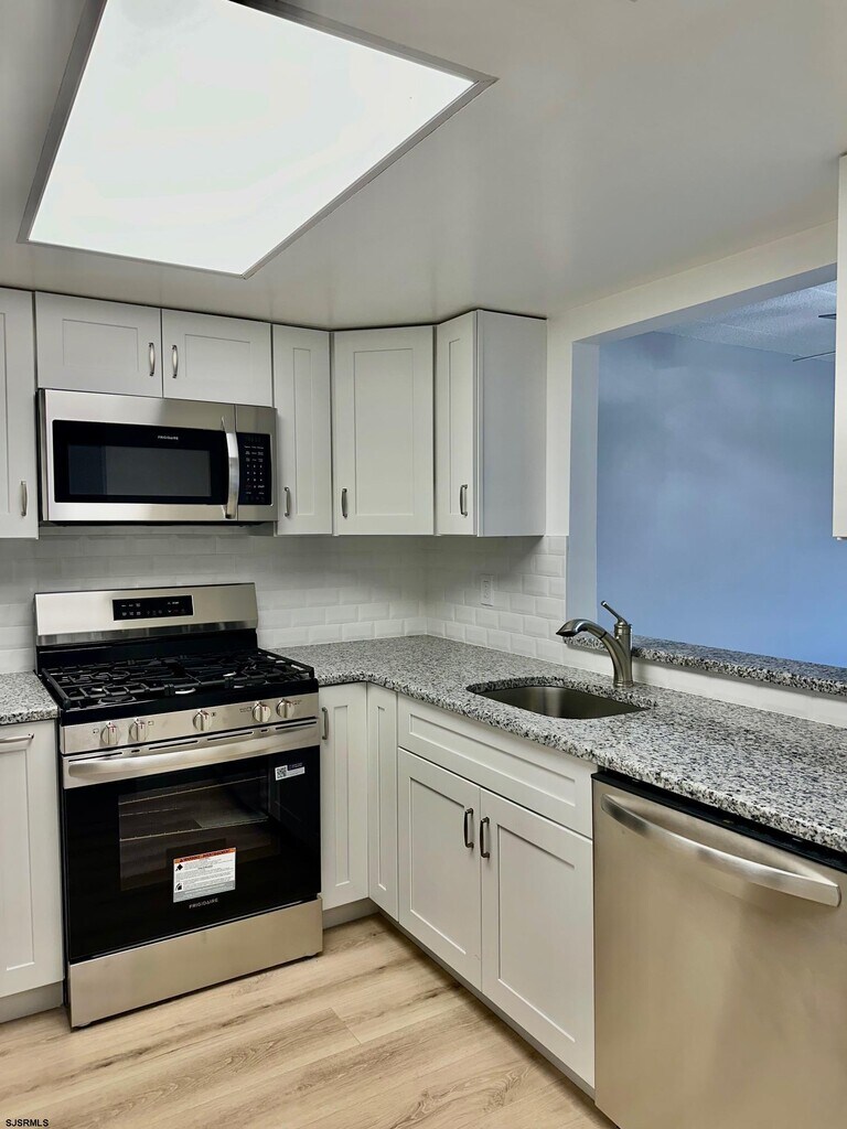 Gorgeous totally remodeled first floor end unit with a private deck and an open floor plan featuring two bedrooms and two new full bathrooms, New luxury plank vinyl flooring throughout , brand new kitchen with granite counter tops, a tiled back splash and all new stainless steel appliances. Primary bedroom suite with a beautiful new vanity and tub and a walk in closet. Plenty of storage space. Four Seasons 55+Community boasts a clubhouse and an in-ground pool and assigned parking space. Schedule your showing appointment today!