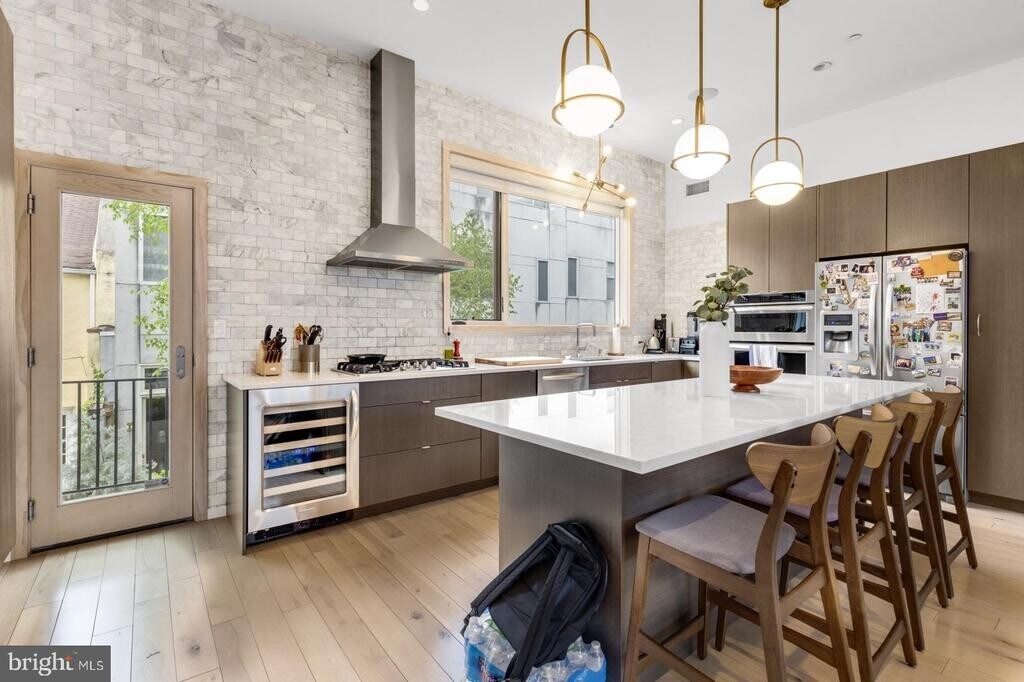 Available Early July: Welcome to 1108 N Bodine St! This stunning 3 bedroom, 2.5 bathroom single-family rental home features GARAGE PARKING, a rooftop deck with a hot tub, a back patio, a finished basement, central a/c, in-unit laundry, heated floor in the primary bathroom, and immaculate finishes throughout. The kitchen is a chef's dream and the attached garage offers one off-street parking spot. This spectacular home won't last long – claim this gem as your own today! Please note that the following must remain with the home: hot tub on roof, planters on the stoop, patio, balcony, and roof; home theater equipment in utility/exercise room; 85 inch TV mounted in basement; TV in exercise room; Samsung frame TV on ground floor living room; elliptical; Wifi extenders located in ground floor living room and guest room closet ceiling; Sonos speakers; white storage cabinets in utility/exercise room; window treatments and basement bar stools. Lease Terms: Generally, 1st month, 12th month, and 1 month security deposit are due. Other terms may be required by Landlord. $50 application fee per applicant. Cats and small dogs are conditional on owner's approval and may require an additional fee, if accepted. (Generally, $500/dog and $250/cat). Tenants responsible for: electricity, gas, cable/internet, water, and a $21.50/month Risk Protection Fee. Internet must be Verizon Fios. Landlord Requirements: Applicants to make 3x the monthly rent in verifiable net income, credit history to be considered (i.e. no active collections), no evictions within the past 4 years, and must have a verifiable rental history with on-time rental payments. Exceptions to this criteria may exist under the law and will be considered.