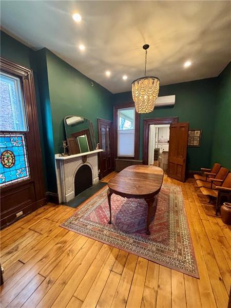 Timeless Classic 1870's brick Italianate style 3 bedroom home in historic Manchester. Loads of period detailing from tulip capital columns, original entry ceramic tile, etched glass entry doors, 5 marble/slate mantels, in-laid flooring and more! Gourmet center island kitchen fully equipped with all stainless appliances. Gorgeous family room with built-in's, formal dining, Spacious master bedroom with large closet. 3rd floor flex space can be 4th bedroom or sun filled family room. Open side porch off kitchen leads to private fenced in courtyard and 2 car detached garage. Large covered front porch Conveniently located with easy access to light rail system, downtown, Casino, Science Center, stadiums and all major roadways.