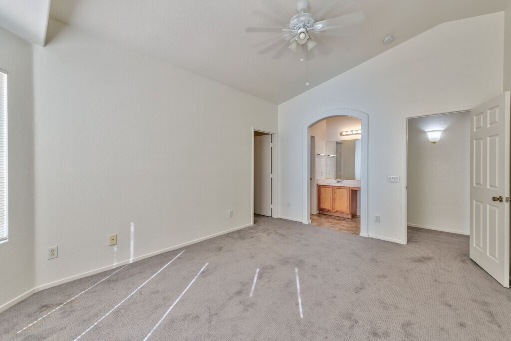 Welcome to this beautiful and spacious three-bedroom, two-bathroom home that perfectly combines comfort, style, and functionality. Step into the bright and airy front living room featuring vaulted ceilings and plenty of natural light—an ideal space for relaxing or entertaining guests. The well-appointed kitchen boasts a charming garden window, vaulted ceilings, ample cabinetry, pantry storage, and easy flow into the separate dining area, which opens directly to the backyard—perfect for indoor-outdoor living. The large primary suite includes vaulted ceilings, a generous walk-in closet, and an ensuite bathroom complete with a tub/shower combo and a dedicated makeup vanity. Enjoy warm afternoons or evening gatherings in the expansive backyard with a paved patio, mature shrubs, and room to garden or play. This home offers the perfect blend of tranquility and convenience—don’t miss your chance to make it yours! NON-REFUNDABLE app fee per person and ALL ADULTS MUST APPLY. If the application is incomplete, this will cause delay in processing. *Separate $150 ADMIN FEE IS COLLECTED, IF APPROVED. Pet rent/deposits are per pet. All Faranesh Real Estate and Property Management residents are enrolled in the Resident Benefits Package (RBP) for $45.00/month
