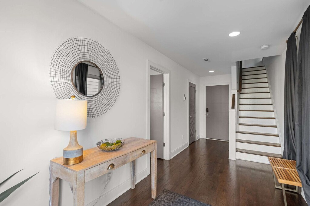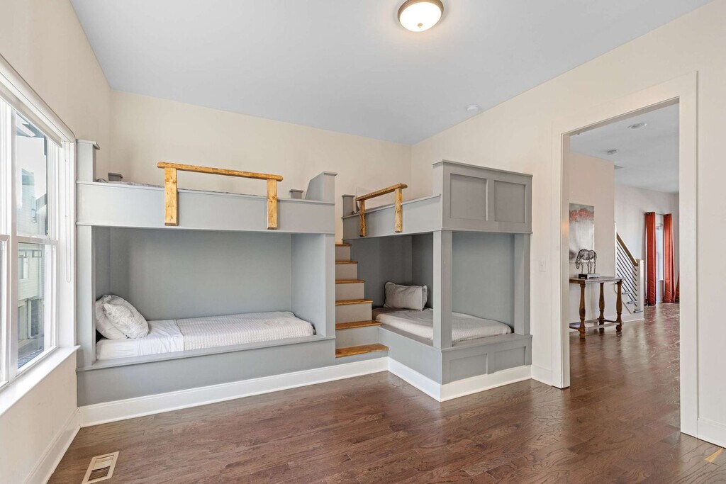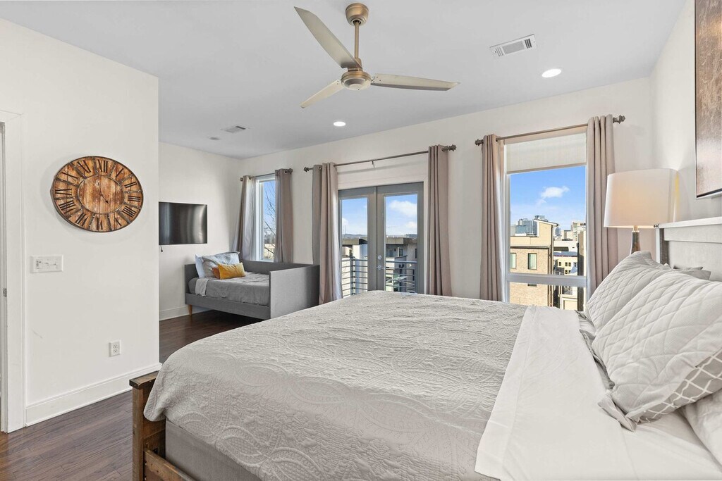 Feel at home in this modern and spacious home, perfect for groups of family or friends visiting Nashville, Tennessee. With four bedrooms and three and a half baths, this home offers plenty of space for everyone to spread out. Enjoy a fully stocked kitchen with bar seating, a spacious living room, and a large rooftop patio with great views of downtown Nashville. The home also features a washer and dryer, smart TVs, Wi-Fi, and a two-car garage. The home is thoughtfully designed with a fully stocked kitchen, complete with bar seating, and a spacious living room for relaxation. Enjoy modern amenities such as smart TVs and Wi-Fi, ensuring entertainment and connectivity during your stay. The large rooftop patio provides a perfect spot to unwind and take in the stunning views of downtown Nashville. Located less than 2 miles from Lower Broadway, Nissan Stadium, Bridgestone Arena, and all the famous Honky Tonks of Nashville, this home offers easy access to the city's vibrant attractions. A short walk takes you to The Gulch area, known for its shops and dining. Nashville's convenient transportation options, including Uber, Lyft, and scooters, make exploring the city a breeze. Nearby attractions include Stompin' Grounds Restaurant Nashville, Bastion, Adele's Nashville, Fort Negley, and The Parthenon, all within a short drive. Guests are required to sign a Rental Agreement. The minimum age to rent is 18 years old. Smoking and parties are not allowed on the property. [SI]