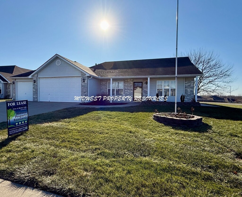 Beautiful, clean and spacious 3 bedroom, 2 bath home is available for rent. Enjoy the convenience of everything being on one level (no basement)! The kitchen island offers a place to pull up a stool for breakfast. Lots of cabinet space and the dining area is large enough for an oversized kitchen table. Primary bedroom has walk in closet with private bathroom room with double sinks. Laundry will never be a chore again with this centrally located Laundry closet in close proximity to all the bedrooms. Oversized back yard with patio. The three car garage with opener gives you plenty of room for storage and has a built in work bench. NO PETS. No housing vouchers. $50 Application Fee & $99 Tenant Admin Fee for approved applications. Tenant is responsible for mowing and all utilites. **BONUS AMENITY INCLUDED** A portion of the Tenant's total amount due will be used for the Resident Benefit Package. This includes HVAC filter delivery service, resident rewards program, identity theft protection, credit building, move-in concierge and much more. Ask your property manager for more details! Midwest Property Resources specializes in bringing clean, well maintained properties to the market and pairing them with tenants that appreciate them. Visit to view current properties, learn details, or click to schedule an in person showing! We do not offer self viewings, an agent will meet you at the property. Midwest Property Resources...."Live a Better Life"