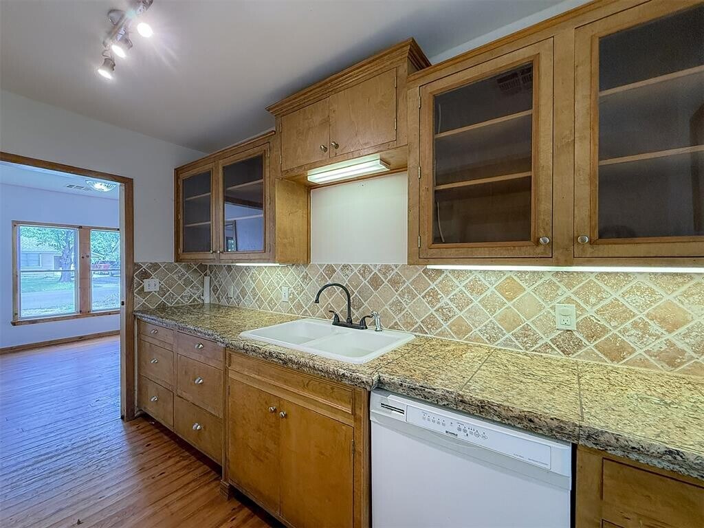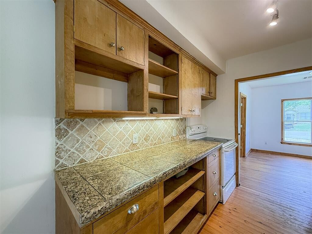Charming 2-Bed,2-Bath This beautifully updated home offers classic charm with modern convenience. Featuring hardwood floors throughout,each bedroom includes its own private bath for added comfort. The kitchen boasts durable stone countertops and a smart,functional layout perfect for everyday living or entertaining. Enjoy a fenced backyard oasis,ideal for pets or relaxing outdoors. Nestled on a quiet street just minutes from East Central University,shopping,and dining,this home combines peace and convenience. Appliances; Range and Refrigerator