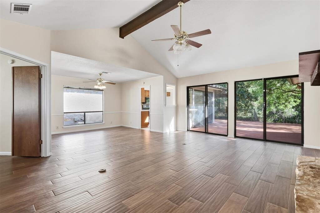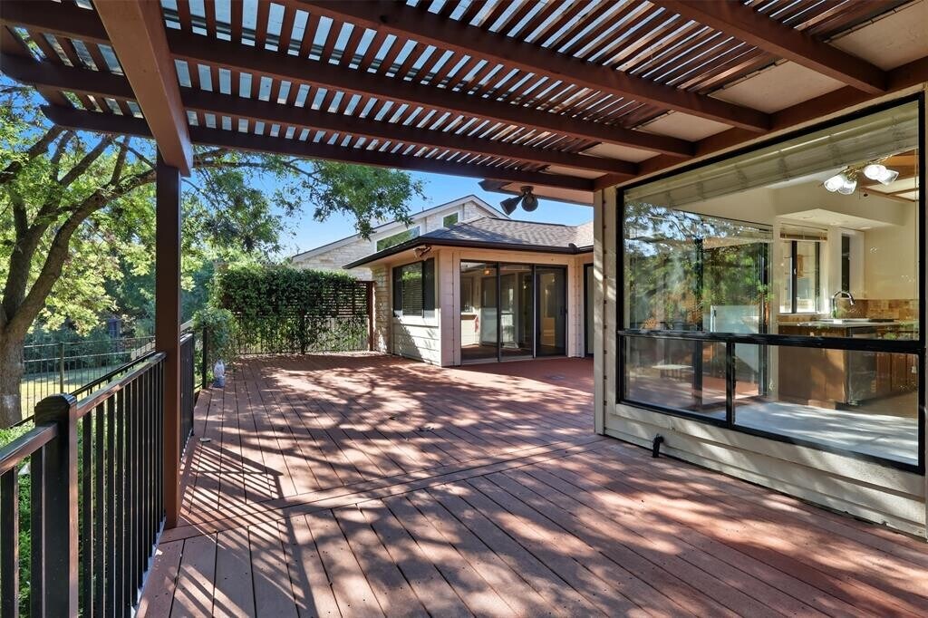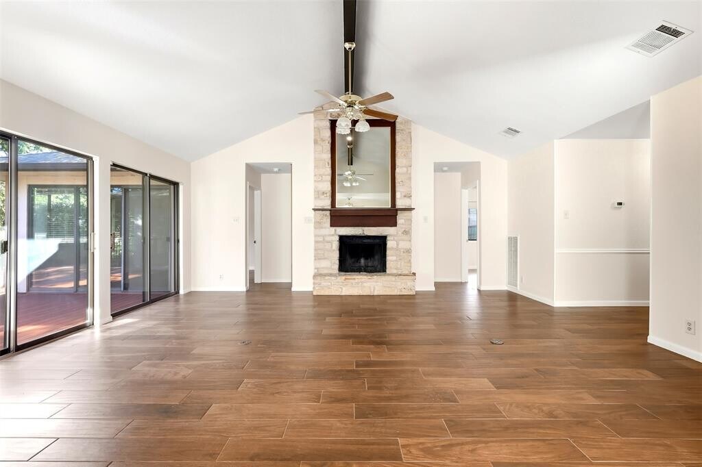 Spacious open-concept living area with high ceilings and a striking stone fireplace, seamlessly flowing out to a large backyard deck that offers serene views of a lush greenbelt and creek. The kitchen, complete with all appliances, also overlooks the deck—perfect for entertaining. Each bedroom features its own private bathroom, providing comfort and privacy. A separate utility room includes washer, dryer, and additional storage space. Enjoy access to Lakeway amenities such as golf, tennis, swimming pools, parks, hiking trails, a marina with boat ramp, and even a private airport with fuel and parking.