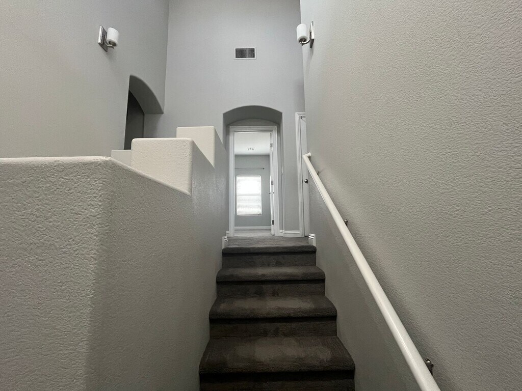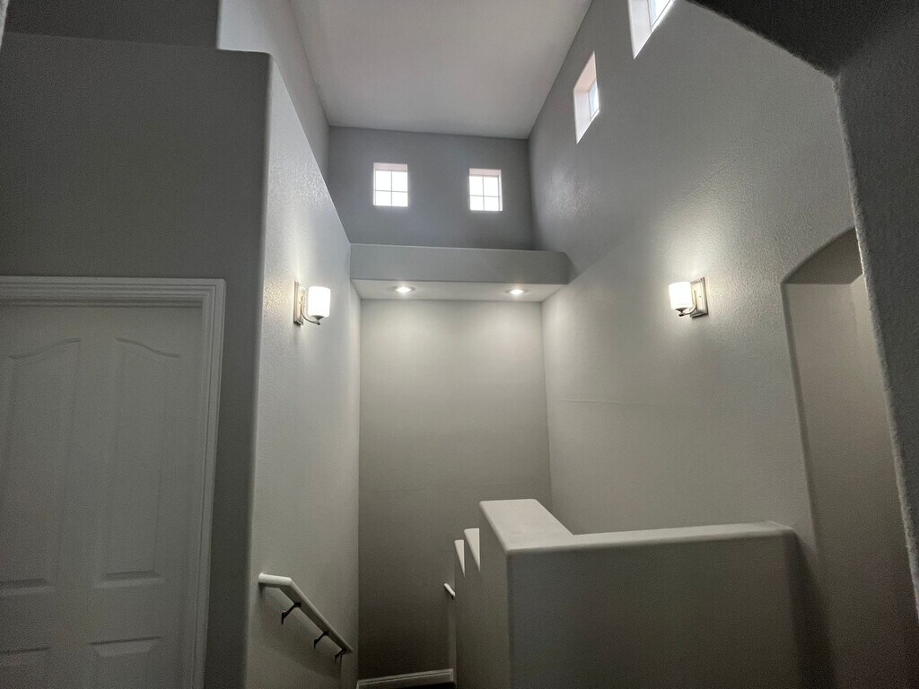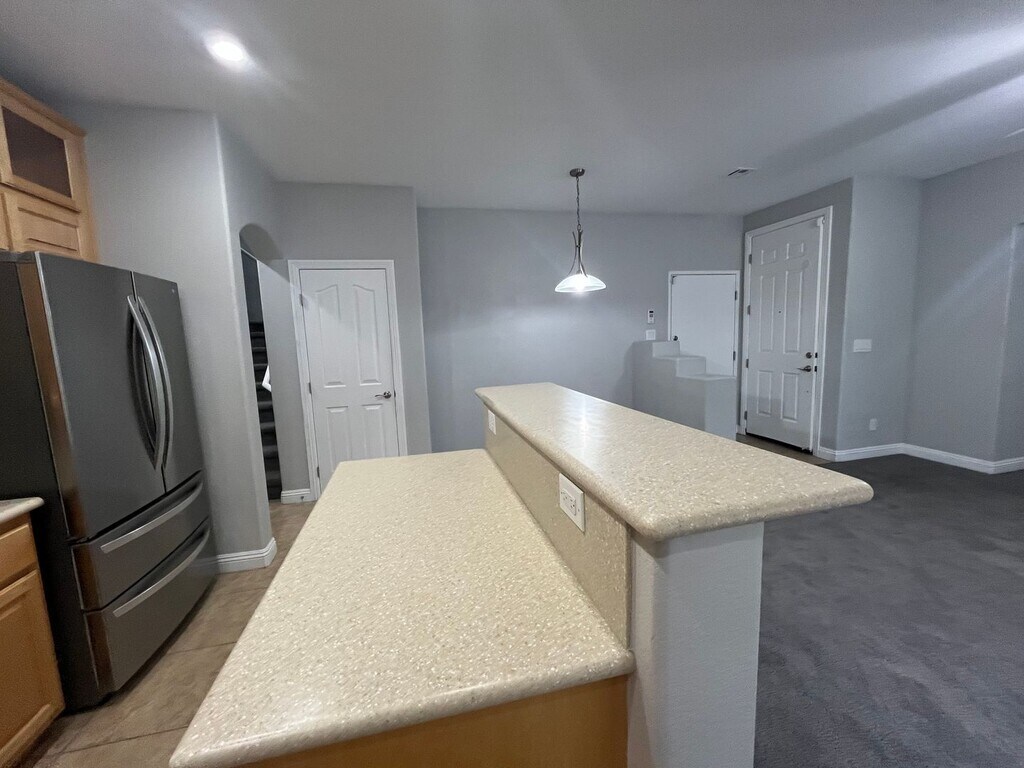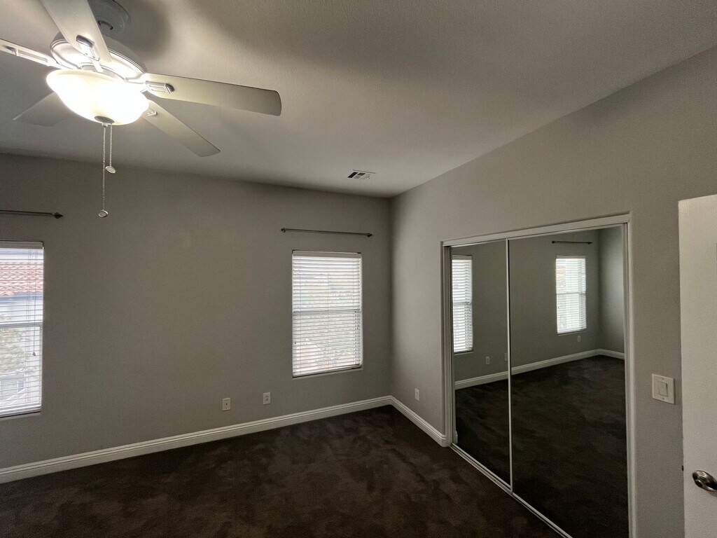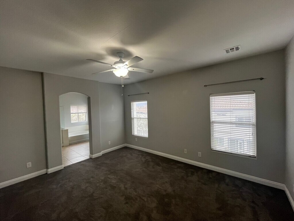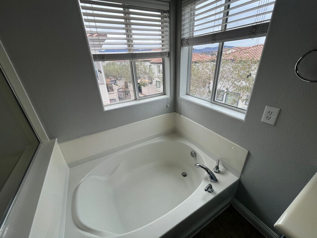 Welcome to the gated community of Paradise Place, this modern 1,577 sq. ft. townhome offers mountain views and resort-style amenities. Easy access to the 95/I-11 Freeway to head into the Vegas valley or out to Boulder City and Lake Mead. The open-concept kitchen features solid-surface counters, stainless appliances, and a bright living and dining area with ceiling fans throughout. A main-floor bedroom and full bath offer ideal flexibility for guests or a home office. Upstairs, the primary suite includes a walk-in closet, dual vanities, soaking tub, and separate shower. The secondary suite has its own bath and walk-in closet, plus an upstairs laundry room with washer and dryer. The finished backyard features turf and a large covered paver patio—perfect for relaxing or entertaining. Enjoy a sparkling pool complex, pet-friendly walking trails, and a playful toddler splash pad. With only three homes per building, each residence includes a private two-car garage and nearby guest parking. Water and Sewer are paid for by the Landlord