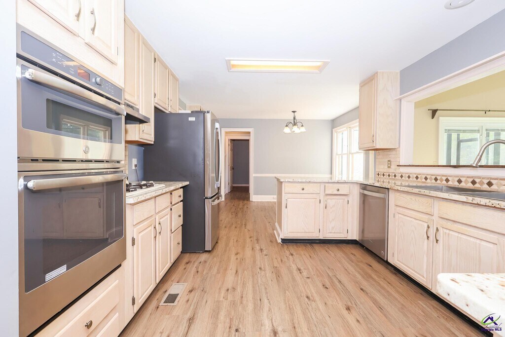 This 4-bedroom, 2.5-bath home sits along the 17th hole of Southern Landings Golf Club and is filled with thoughtful updates throughout. The kitchen features brand-new appliances, granite countertops, and a classic tile backsplash. Luxury vinyl plank adds style and durability in the kitchen and baths, while updated light fixtures and ceiling fans give a fresh, modern feel in every room. Enjoy quiet mornings or weekend entertaining on the newly screened-in back patio, overlooking a freshly fenced backyard. Conveniently located near Robins Air Force Base, this home is a perfect blend of stylish updates and prime golf course living—and one you don’t want to miss!