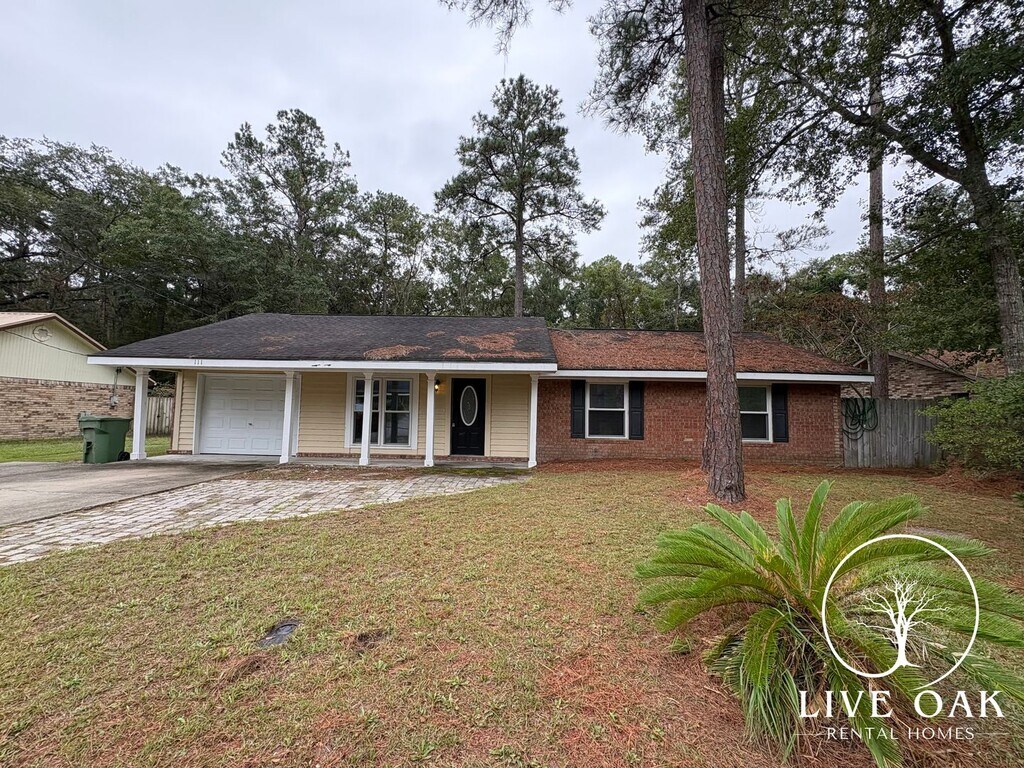 This single-story home offers 3 bedrooms, 2 baths, and 1,188 sq. ft. of comfortable living space. Enjoy an open floor plan with a dining room featuring large French doors that lead to a backyard with a privacy fence—perfect for entertaining or relaxing outdoors. The eat-in kitchen boasts beautiful white cabinetry, and a designated laundry area includes washer/dryer connections. A covered front porch and 1-car garage complete this inviting home. Conveniently located in the Oakview neighborhood, just minutes from shopping, downtown Hinesville, Fort Stewart, and much more — Starbucks and First Watch are just over a mile away! Pet-friendly!* (*A one-time $250 pet fee may apply per pet, 2 pets limit.) Note: this property is managed by Live Oak Rental Homes, a sister company of True South Rentals.