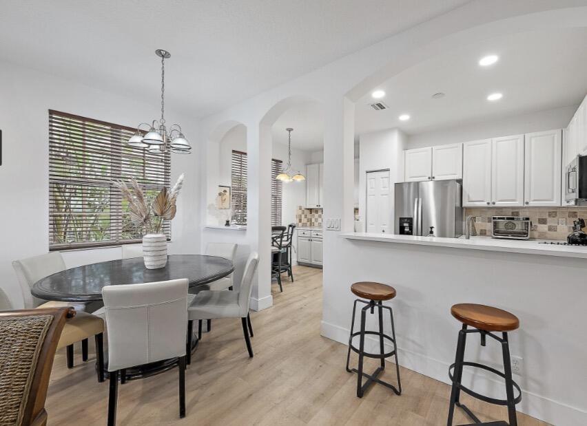 Experience the Evergrene lifestyle with this beautifully furnished townhouse (end unit) over 1,600 SF. Living,dining & master on the 1st flr lead to an updated kitchen w/ white quartz countertops,wood flooring,gas stove,stainless steel appliances. Upper level is a perfect guest retreat w/ living area,separate bedroom,desk area & full bath. Third BR is now a den upstairs. 2 car garage w/ 2 bikes to enjoy. This community is situated on Lake Dorothy w/ 12,000 SF clubhouse amenities featuring a restaurant,bar,resort style pool w/ jacuzzi,basketball,volleyball,tennis,pickleball,teen area,aerobic studio,state of the art fitness center. Available 5/21/2026 for annual lease. All utilities included except electric. MLS ID R11158475