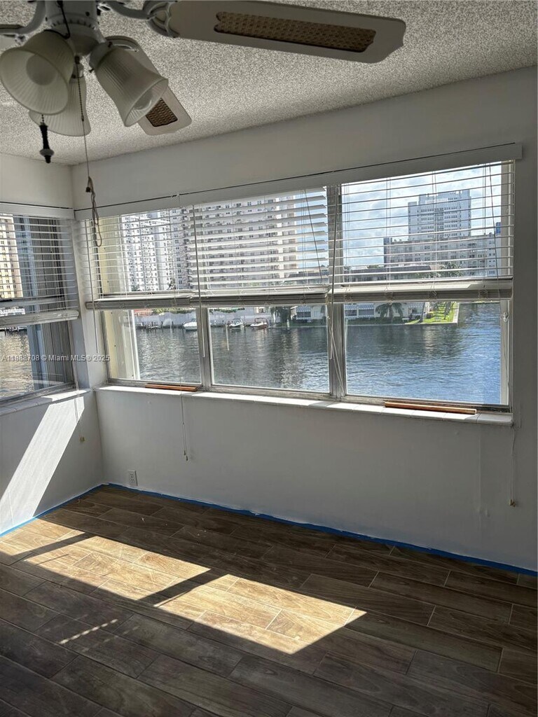 Beautiful wrap around intracoastal view! All ages are welcome! Corner unit with lots of privacy. Gated community with walking distance access to the inter coastal water. This exquisite 825 sq.ft spacious, one-bedroom, one-bathroom condo is located in an exclusive building that perfectly embodies the charm of the beach lifestyle. Large master bedroom with new wood plank floor, Large walk in closet. Eat in kitchen. Bathroom has just been remodeled. Water is included in the rent. Central A/C is only a few years old. Hurricane windows protection. The property also has secure parking and a community boat dock. Enjoy the large heated swimming pool and pool deck overlooking the intracoastal water. Ideal for those seeking a peaceful retreat in Hallandale Beach. This condo provides a nice lobby area, fitness room and a recreation room. Convenient access to the beach, Gulfstream Shoppes and Casino and Aventura Mall. Walking distance to Publix, Winn Dixie, Panera Bread, Ross, Burlington, Walgreens, Cvs, Walmart and many restaurants. Free city bus to major shops in Hallandale Beach.