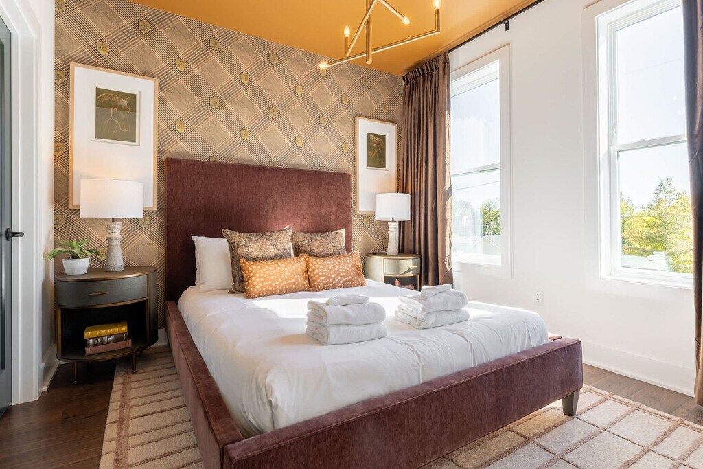 Feel at home in Golden Hour, a 4-bedroom luxury retreat offering skyline views and a rooftop fire pit, just 3 miles from Broadway. This home combines bold design, curated art, and a chef’s kitchen with seating for 14. It features memory foam beds, smart TVs, high-speed Wi-Fi, a coffee station with drip and pod makers, an in-unit washer and dryer, USB charging at every bed, premium linens and towels, designer interiors with custom art and wallpaper, and blackout drapes. The chef’s kitchen is equipped with quartz counters and top appliances. Private garage parking is available with 2 spaces (SUVs over 19’ will not fit). The apartment is located in a vibrant neighborhood near downtown Nashville, trendy East Nashville, and the historic Germantown district. Explore local boutiques, art galleries, and charming cafes. Top-rated restaurants such as The Southern Steak & Oyster or Husk Nashville are just minutes away. With easy access to main roads and public transport, exploring Nashville's landmarks is a breeze. Smoking is not allowed inside the property or near open doors or windows, and a minimum $500 fine applies for violations. Quiet hours are from 10 pm to 8 am on weekdays and 12 am to 8 am on weekends. Registration Number: [SI]