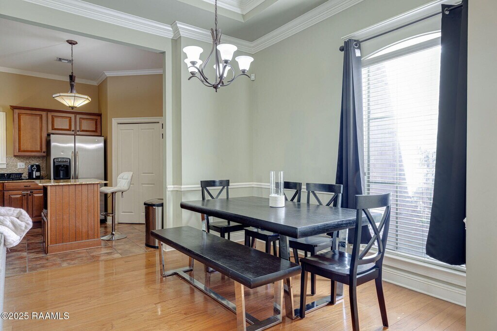 Location, location! This home is centrally located in Youngsville, offering convenience near popular local spots like Nunu's, downtown Youngsville, the Youngsville Sports Complex and top-rated schools. You'll enter into the open living area which boasts wood floors, crown molding, trayed ceilings, and a wood-burning fireplace. The kitchen features stainless steel appliances, a functional island with seating for casual dining, and an attached formal dining area. Retreat to the oversized primary suite with it's ensuite bathroom complete with double vanities, a soaker tub, a separate shower, and a walk-in closet. Outside, enjoy the privacy of a fenced-in backyard that includes a convenient storage shed. Schedule your showing today!