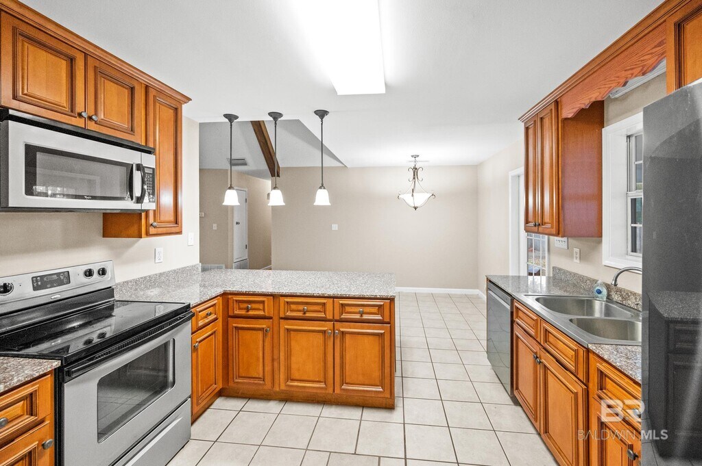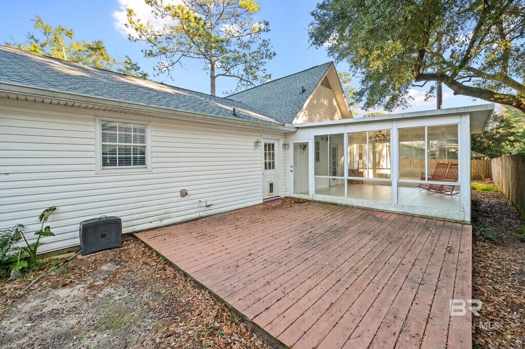 Wonderful three bedroom Daphne Home! Home is one story and features an open and bright living room with vaulted wood beam ceiling! Spacious eat in kitchen off living room! Kitchen features great cabinet and counter top space! Spacious three bedrooms with two full bathrooms,with additional office space. Florida sunroom off your eat in kitchen! Great space for entertaining! Fenced yard. Pets negotiable. Woodburning fireplace in LR is inoperable.
